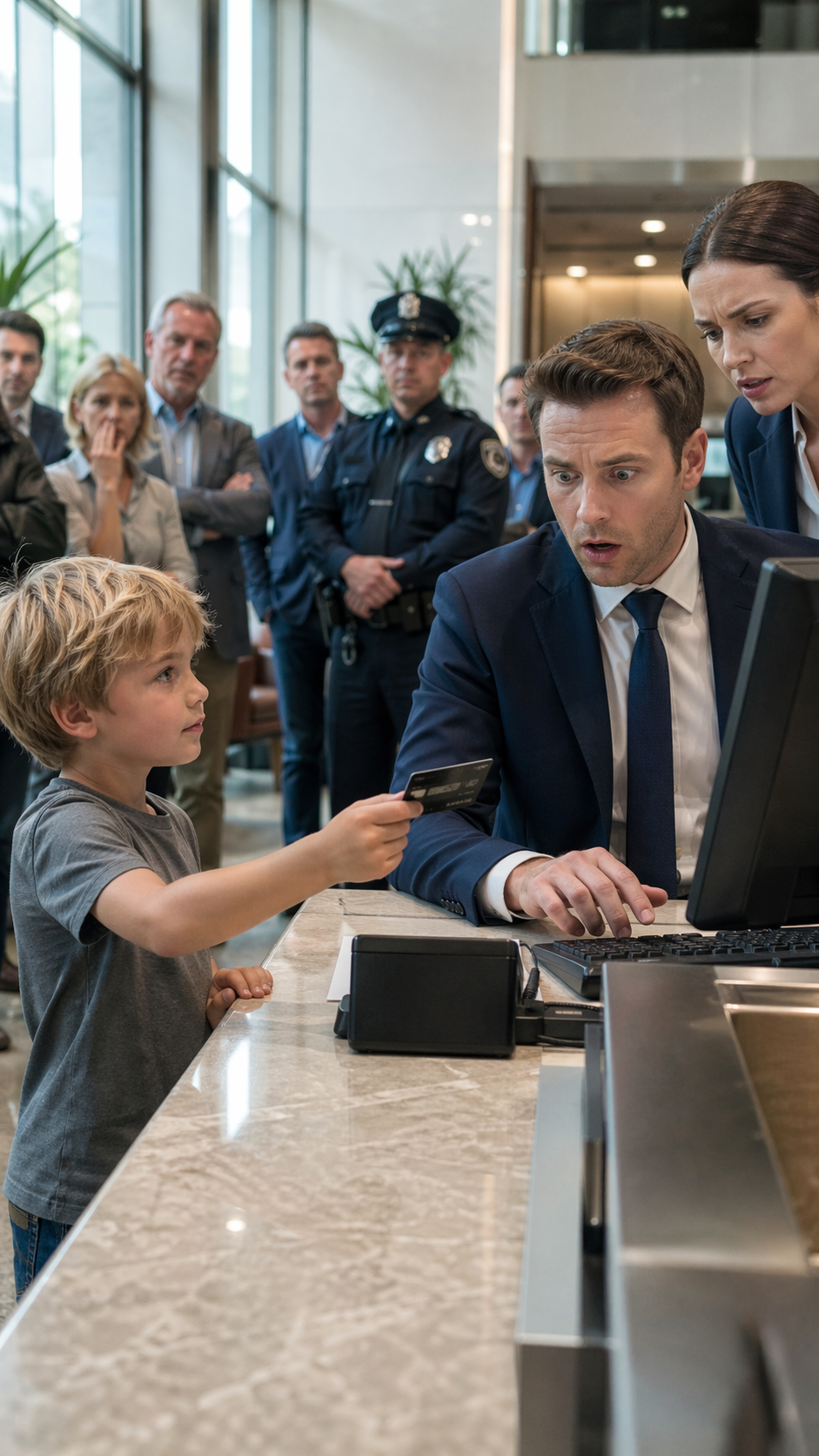 He could not have been older than seven, yet the way he stood at the counter made him seem older in ways that had nothing to do with age, because his stillness carried a kind of intention that did not belong to someone who should have been fidgeting or looking around.