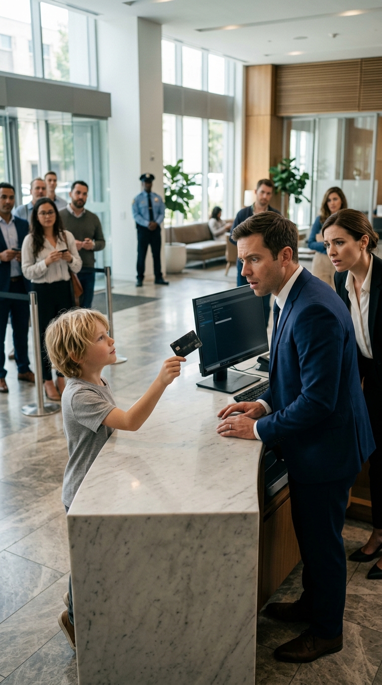 ‘Can You Check This Card?’ A 7-Year-Old Boy Was Quietly Dismissed At The Bank For His Worn Black Card… Until The Employee’s Hands Froze When The Account Displayed Numbers That Didn’t Belong To Any System”