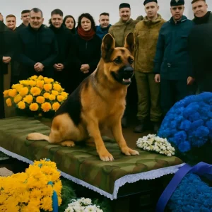At the officer’s funeral, his loyal dog leapt onto the coffin, barking and whining—leaving everyone horrified when they discovered why.