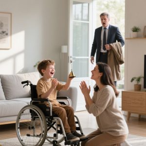 “He hadn’t heard his son laugh in three years… until he came home early and found the new housekeeper kneeling on the floor beside him. What she was doing stunned him—and changed their family forever.”