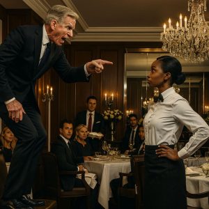 “Get on your knees and clean my shoes right now!” The words cracked through the luxurious Manhattan restaurant like a whip. Every head turned instantly. A tall, silver-haired...