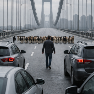 When twenty dogs brought traffic on the bridge to a standstill, one man stepped out of his car and moved toward them—unaware of what he was about to face.