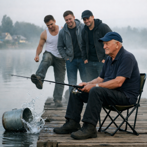 An elderly man sat quietly at the edge of an old wooden pier, fishing, when three young men approached with arrogant smiles — unaware of how this encounter would end.