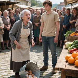 “Please Don’t Hurt Me… My Husband Is Sick,” She Whispered — He Mocked An Old Woman And Crushed Her Only Source Of Income, But When The Thug Raised His Hand Again, A Voice Behind Him Said, “That’s Enough.” What Happened Next Silenced The Entire Market
