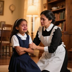 In a grand mansion, where luxury and gold gleamed in every corner, a dark secret hid behind its ornate walls. A little girl, her eyes filled with tears...