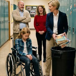 THEY TOSSED HER BOOKS INTO THE GARBAGE AND MOCKED HER WHEELCHAIR, UNAWARE THAT HER FATHER WAS THE COMMANDER OF U.S. FORCES—READY TO SHUT THE ENTIRE PLACE DOWN.