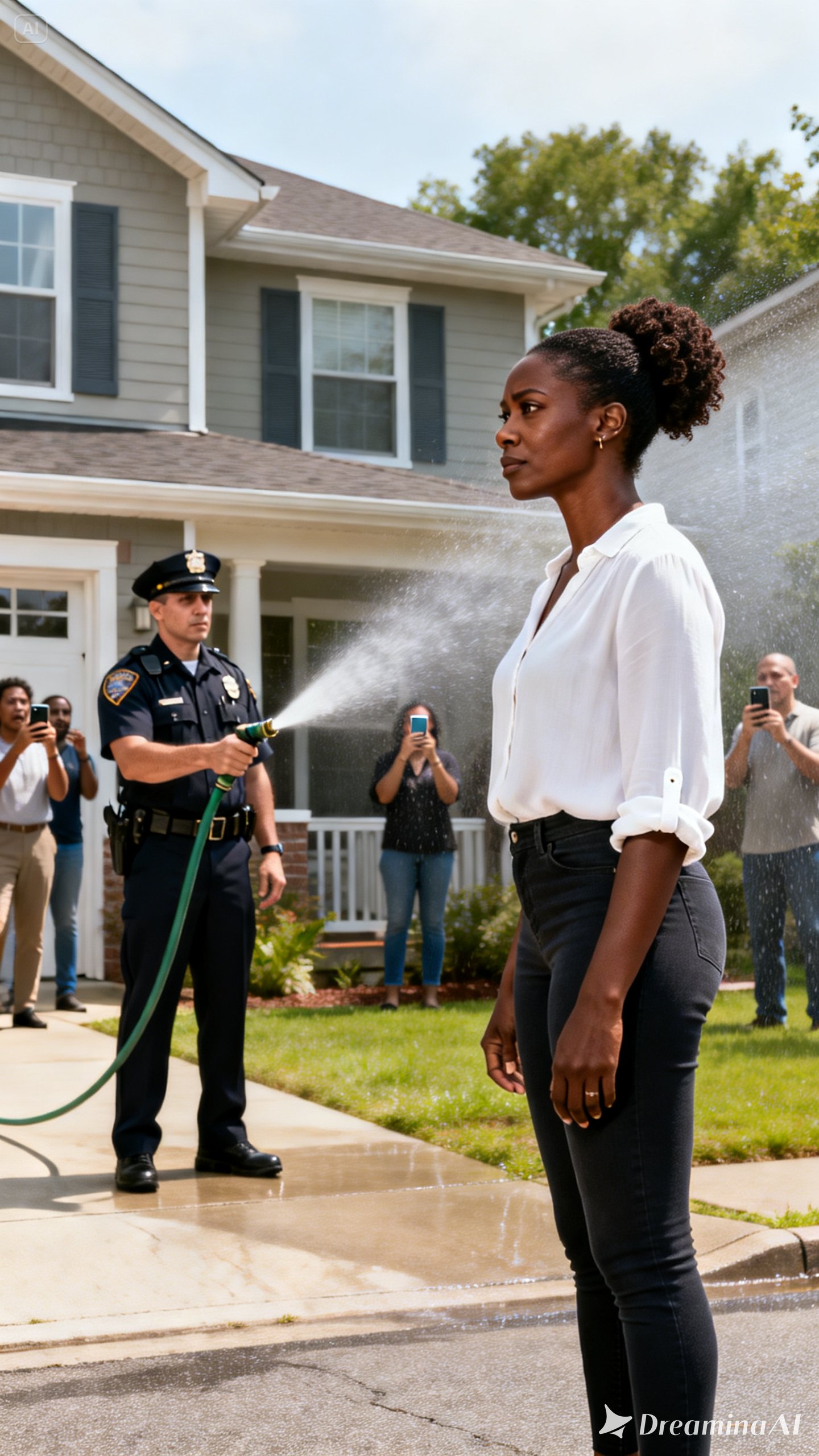 Forty seconds. The water hammers her. She can’t breathe. Can’t speak. Neighbors spill out, phones raised, recording everything. Finally, he stops. She remains seated, broken, mascara streaking down her cheeks. Slowly, she rises, reaches into her pocket, pulls something out—something that drains the color from his face. What she revealed made him beg for mercy.
