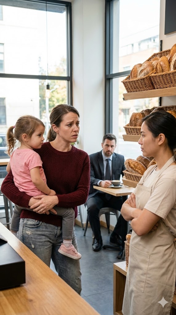 The clerk let out an irritated sigh that echoed in the quiet shop. Marisol rushed on, her words tumbling out in humiliation. “I just wanted to ask… do you have any bread left from yesterday? Anything stale you were going to throw away? It doesn’t matter if it’s hard. It’s for my daughter. Please.”