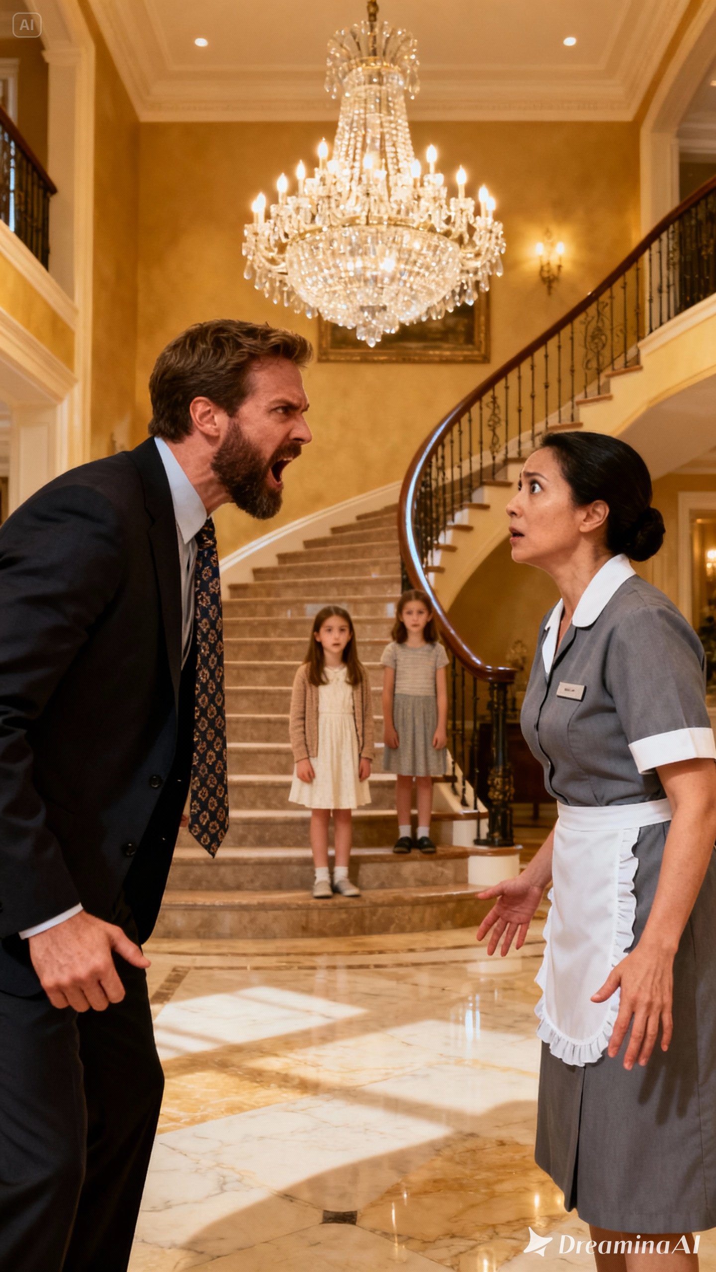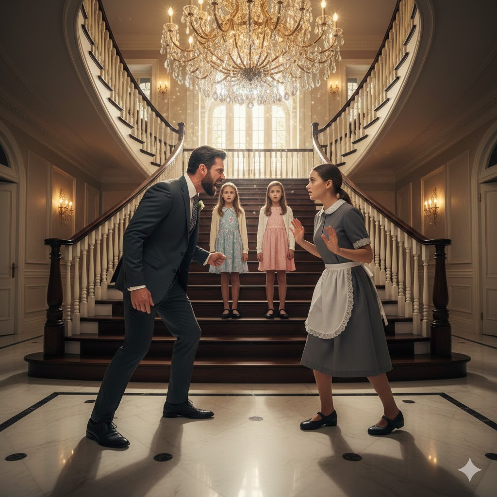 The air in the room seemed to tense as Charles “Charlie” Mendoza, the real-estate mogul whose empire had been built on wealth and fear, roared at the maid who dared to speak to his twin daughters. The crystal chandelier above them trembled, a silent witness to the fury unfolding below.