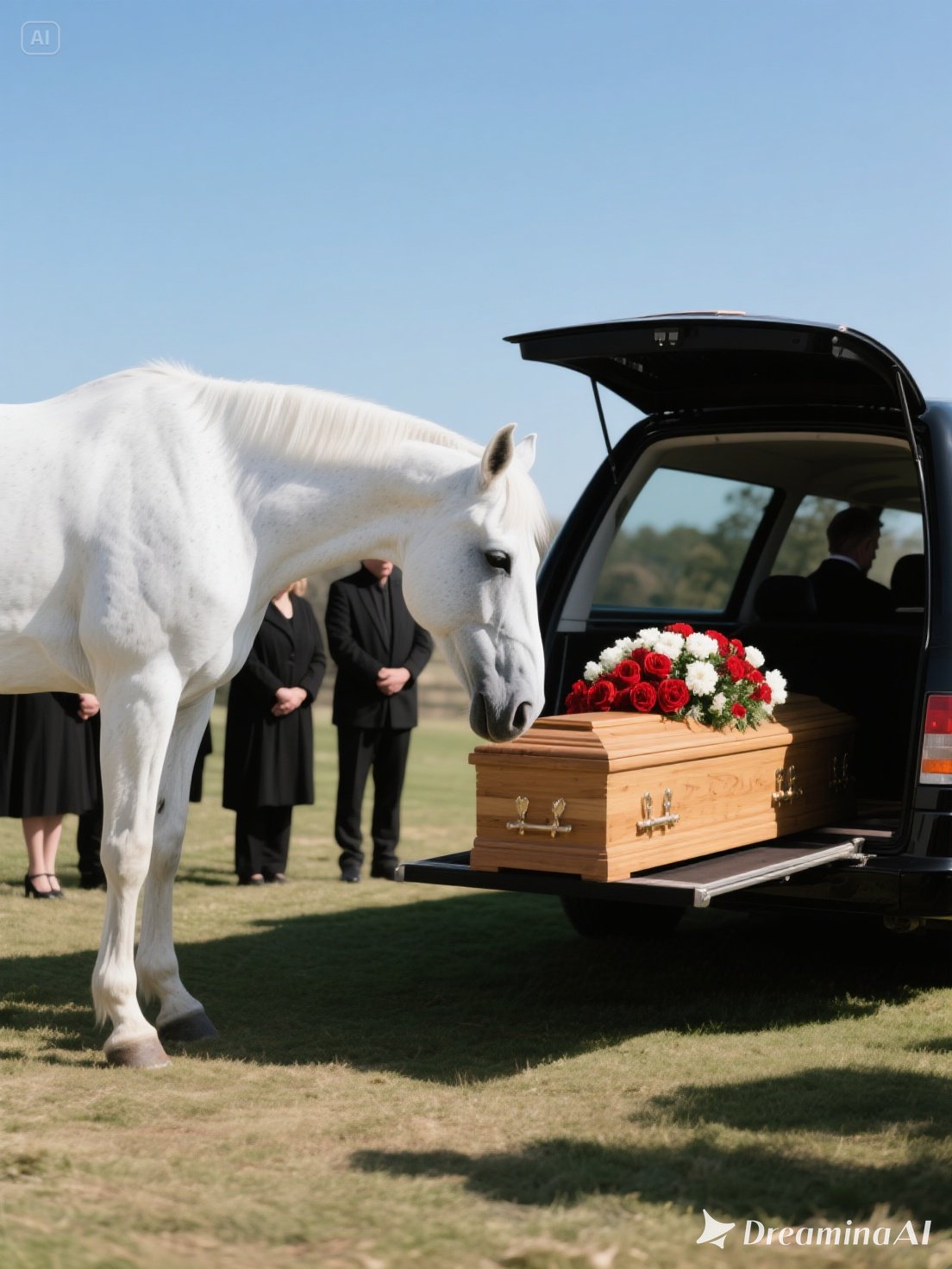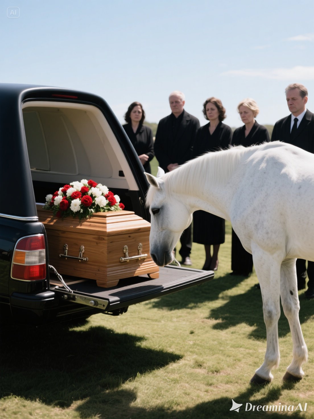 He let out a low, broken sound — not quite a neigh, not quite a cry — something raw and aching, as if he were calling to his master one last time. Then he began to nudge the coffin gently, tenderly, just as he used to when Thomas came with an apple or a sugar cube in hand.