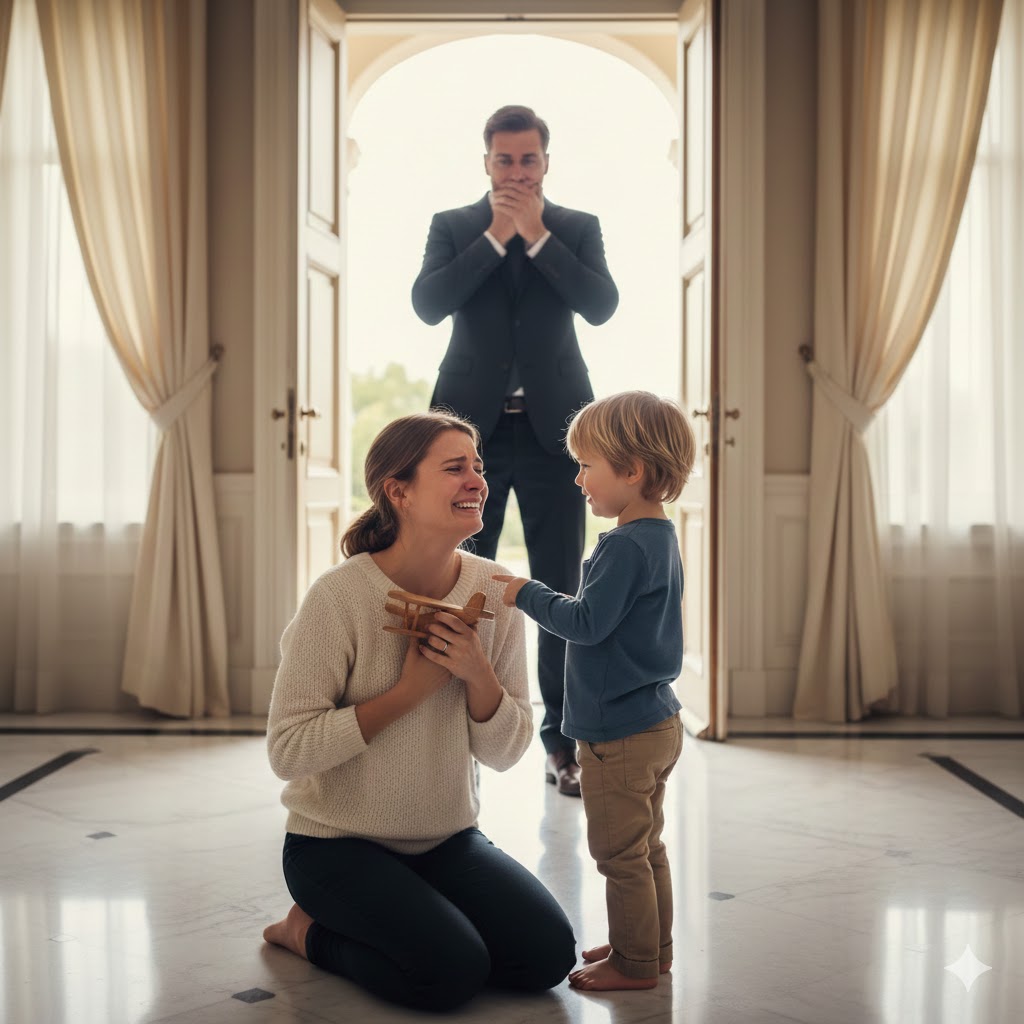 Alexander froze, too overwhelmed to speak. Noah sat cross-legged on the floor beside Emily, clutching a small wooden airplane. His voice trembled, but every word was unmistakably real.