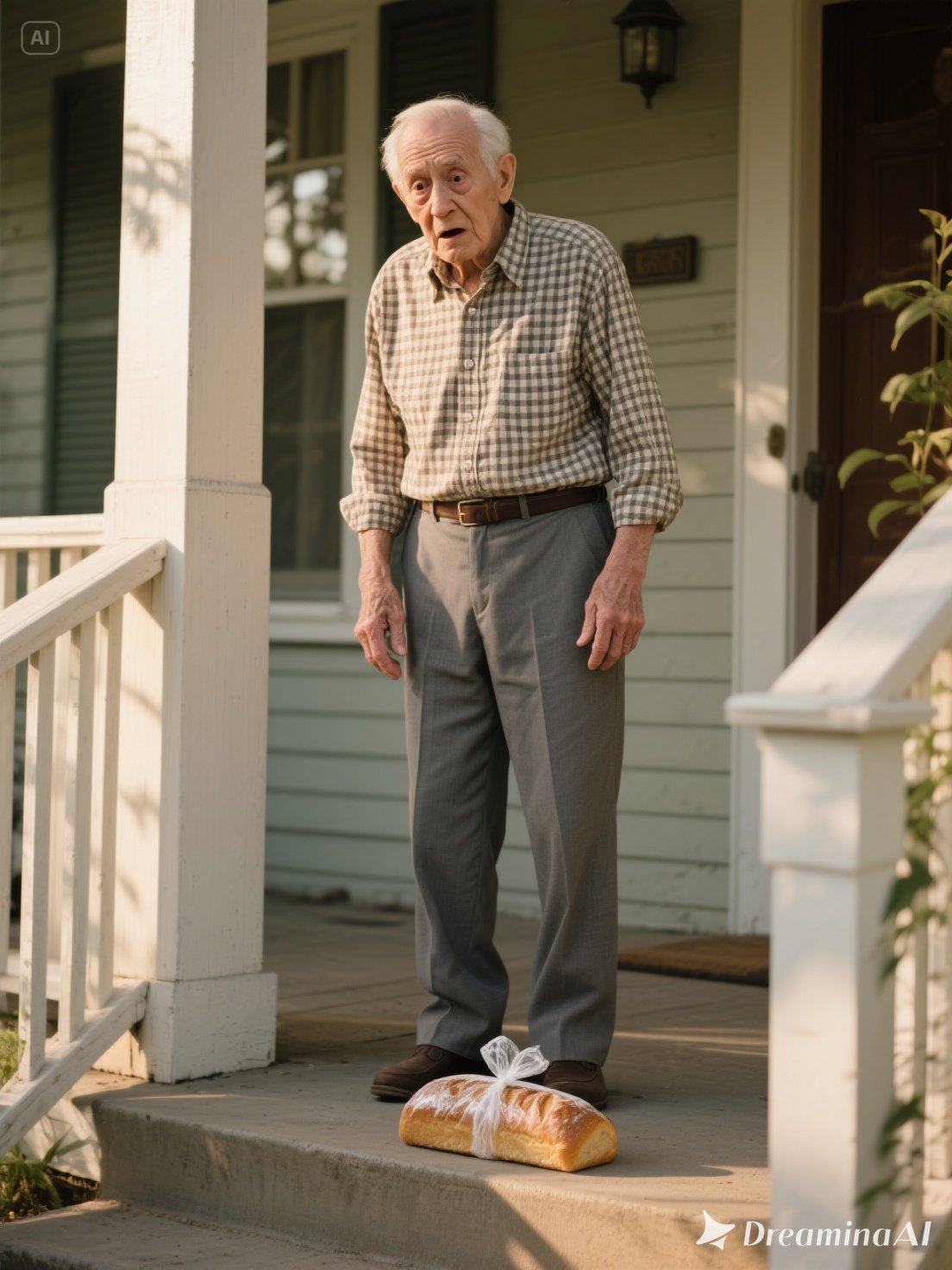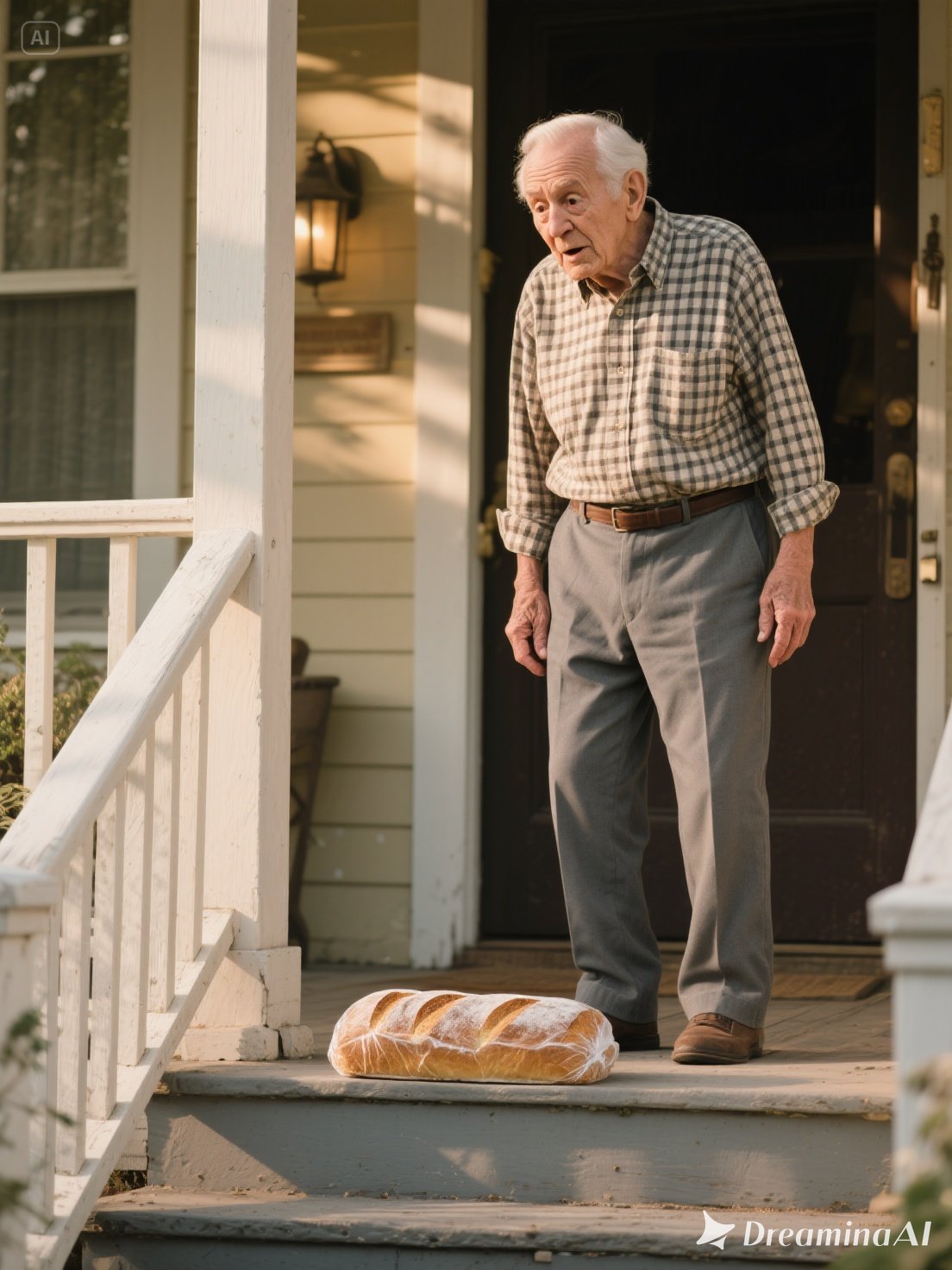 Every morning at the same exact time, the old man stepped onto his porch and saw it: a fresh loaf of bread, wrapped neatly in cellophane.