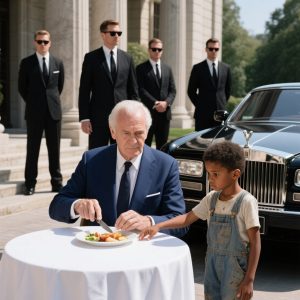 The outdoor café glimmered under the noon sun — crystal glasses, white linens, and quiet wealth in every corner. Benjamin Hale, billionaire CEO of Hale Global, sat alone...