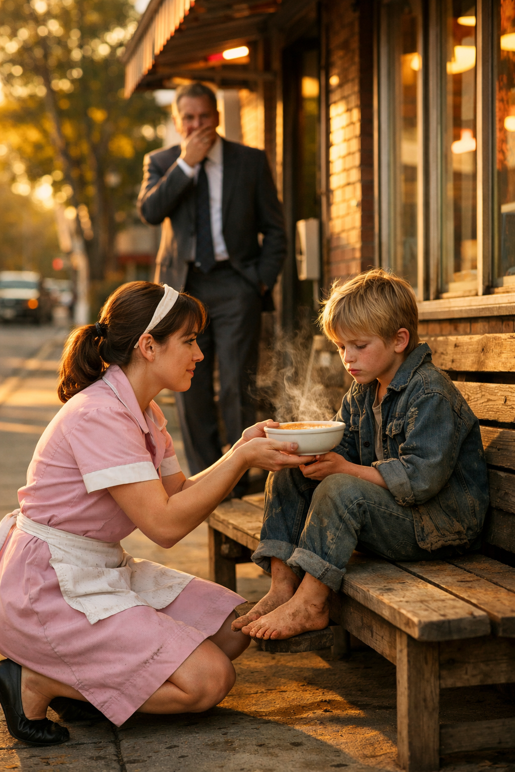 Ethan hesitated… then ate fast, as if kindness had a taste he’d been starving for.