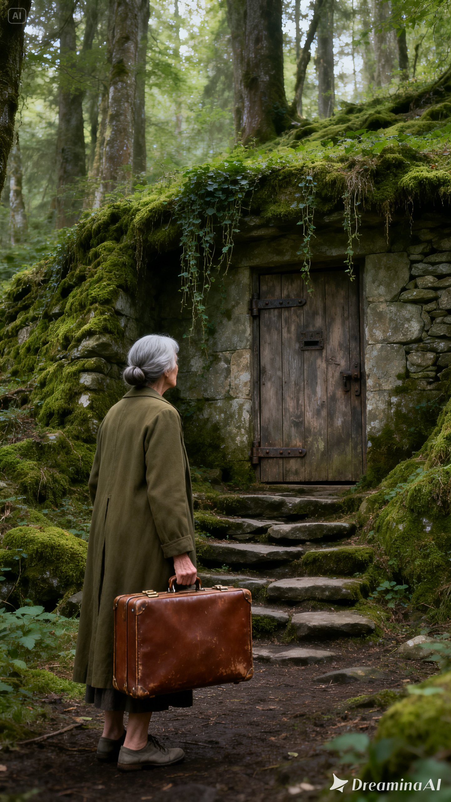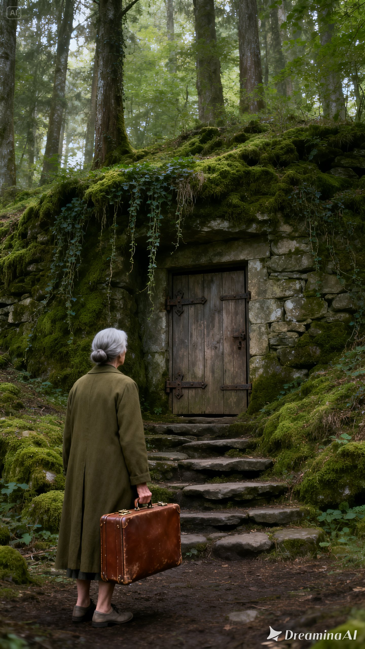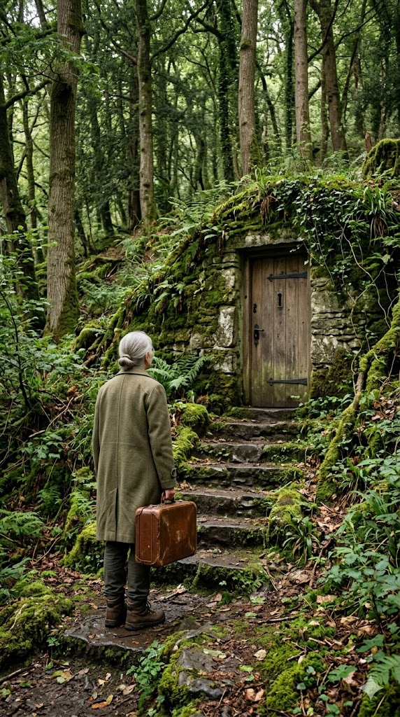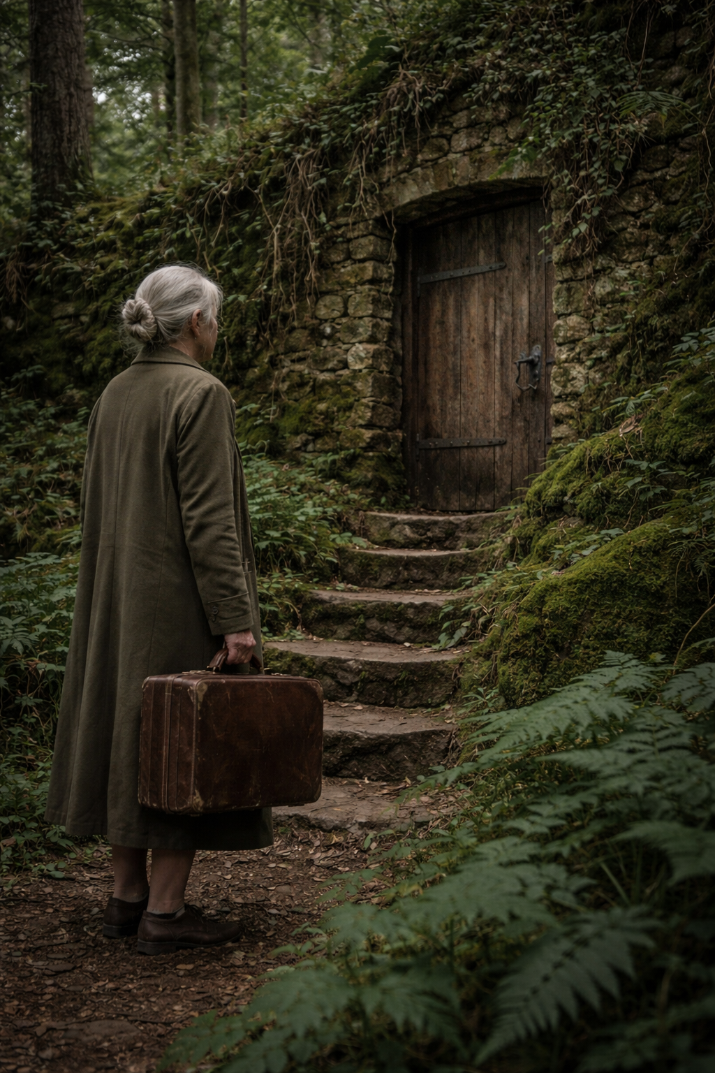 But beyond it, set into the hillside exactly where she remembered, was the cellar entrance. A heavy wooden door framed in stone, weathered and covered in moss—but still standing.