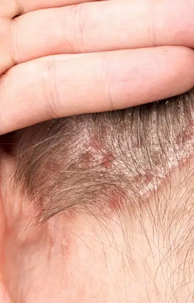 Scalp psoriasis usually appears as well-defined reddish patches covered with silvery-white scales. These plaques may cross the hairline and can cause itching, burning, or temporary hair thinning from scratching. Unlike seborrheic dermatitis, which looks greasy and diffuse, psoriasis plaques are thicker and sharply outlined. Recognizing these differences can help determine if psoriasis might be the cause.
