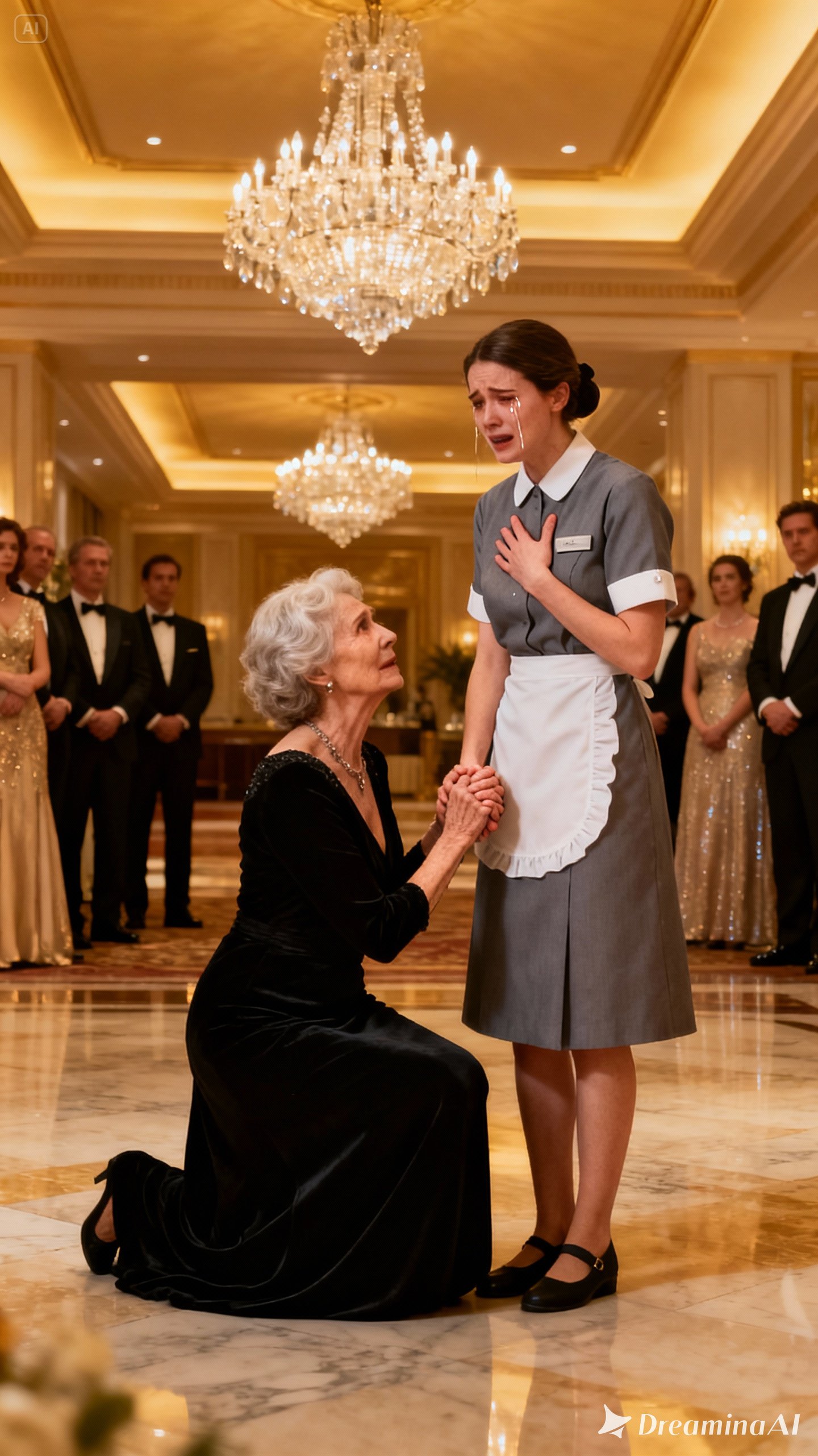 On marble floors polished by wealth and influence, she knelt before a hotel cleaner.