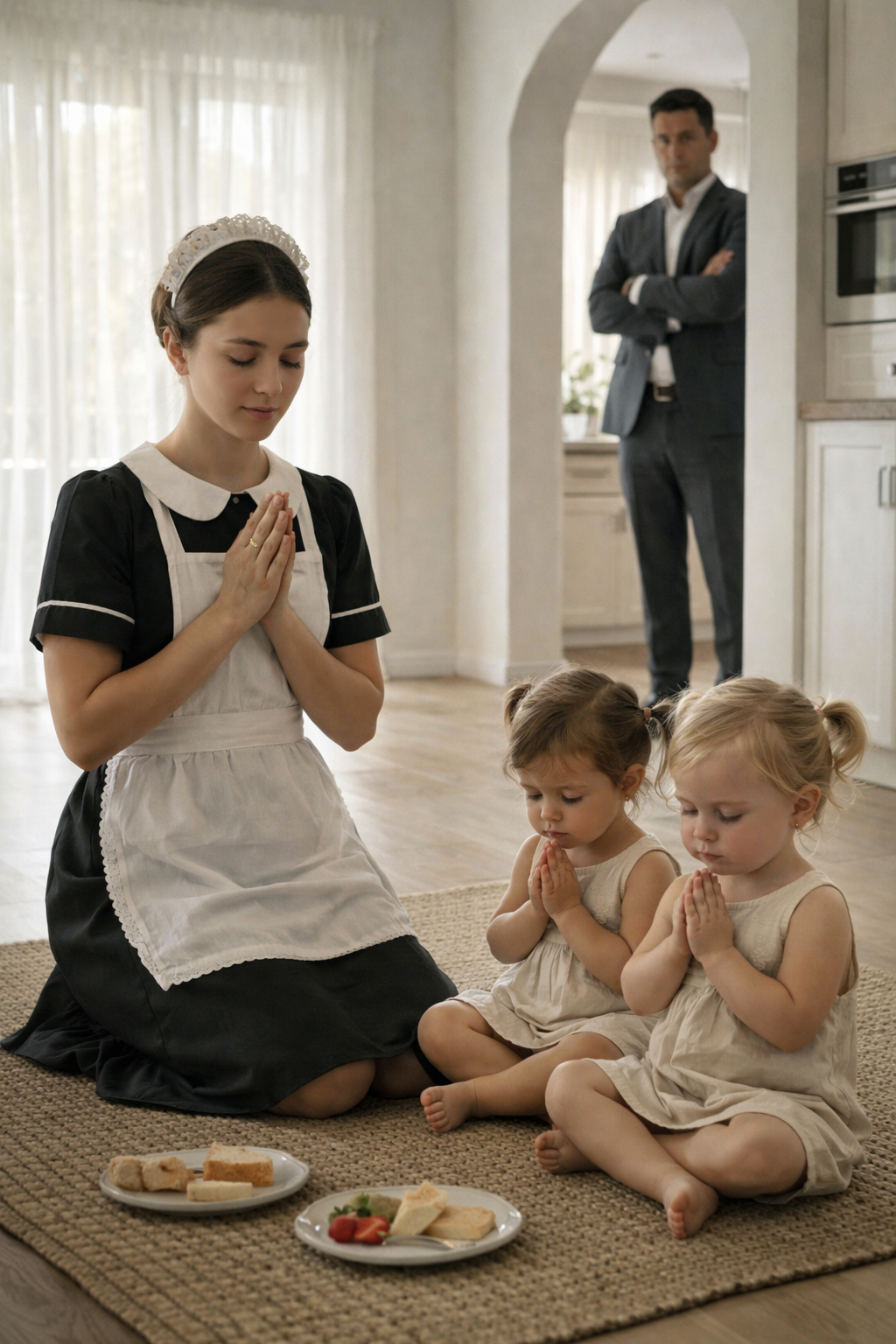 “Mr. Monroe,” she said nervously. “I’m sorry… the girls were fussy, and I was just trying to calm them. I didn’t mean to overstep.”