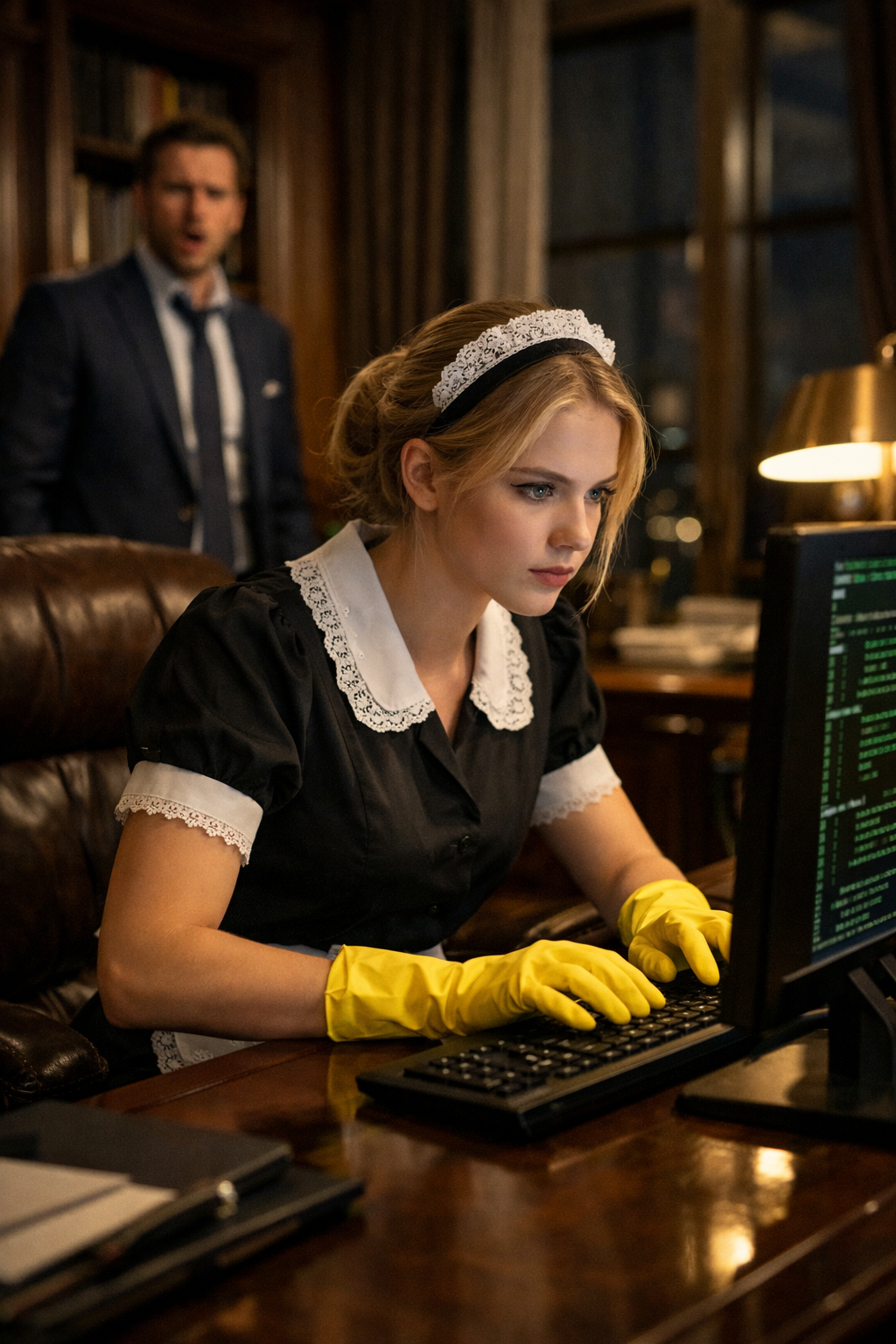 She was young, fair-haired, and seemed almost delicate. She’d been working there for barely two weeks, and Ethan was sure they’d exchanged no more than a “good morning” and a “thank you.” Yet now, the quiet girl who usually cleaned with her eyes downcast was typing furiously, her gaze locked on the glowing screen displaying the company’s most valuable source code.