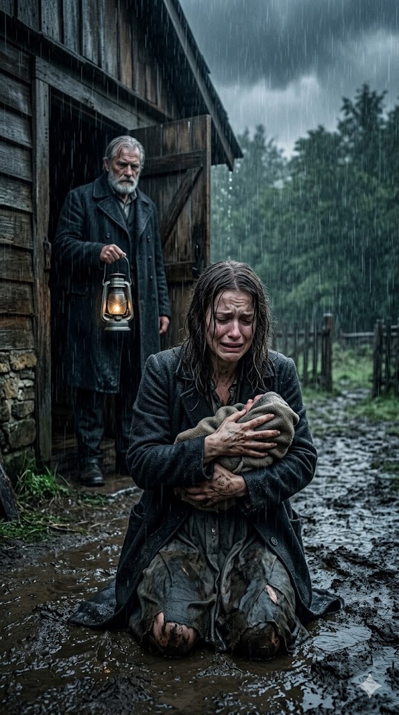 She walked to the front door and flung it open. The icy wind drove the rain inside. Without hesitation, she threw her daughter’s things into the muddy yard. Then she turned to her, still struggling to stand.