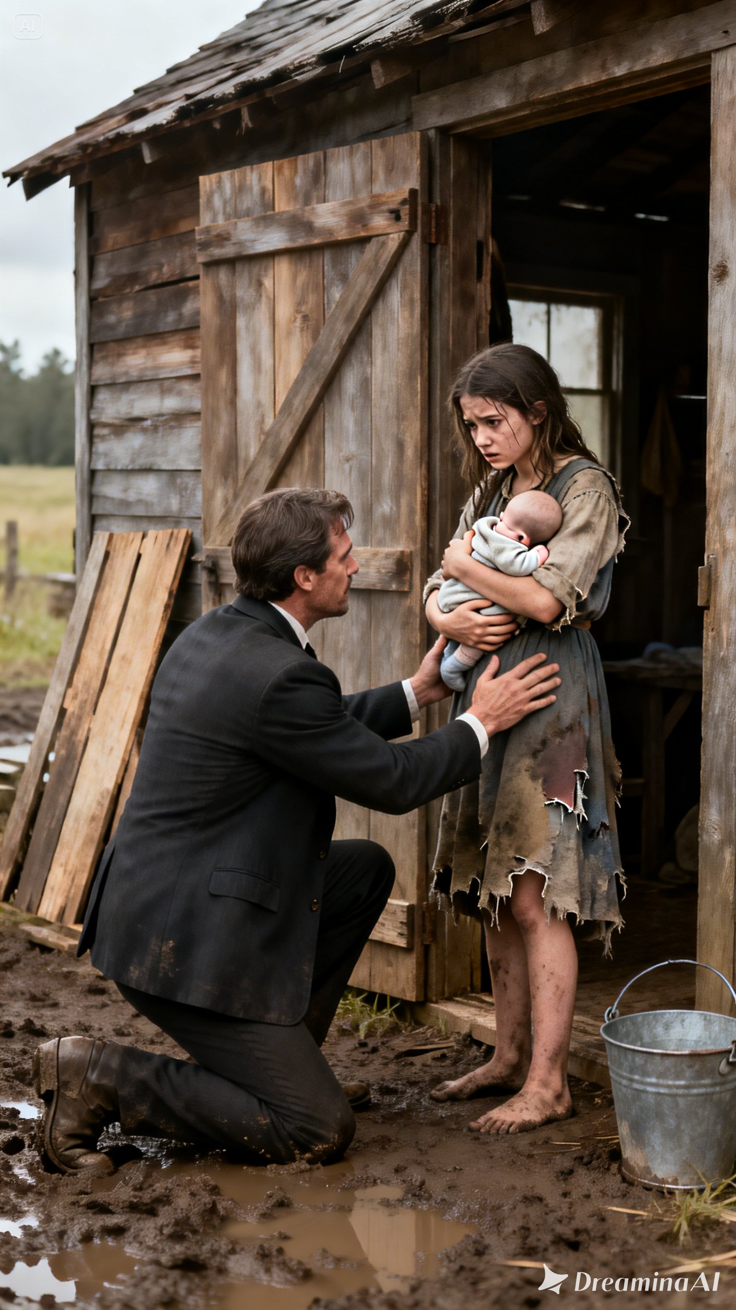 The girl didn’t respond. She only tightened her arms around the baby, her fingers turning pale with strain.