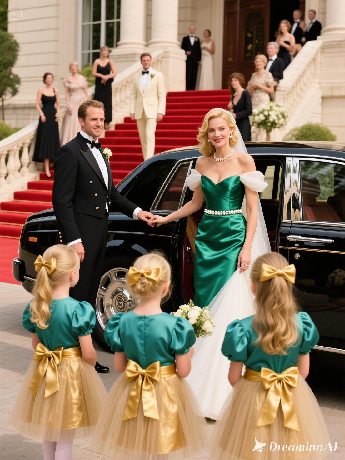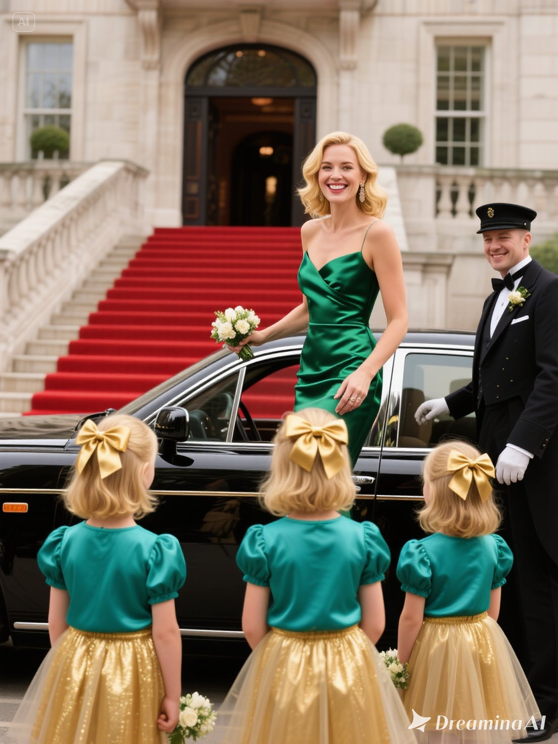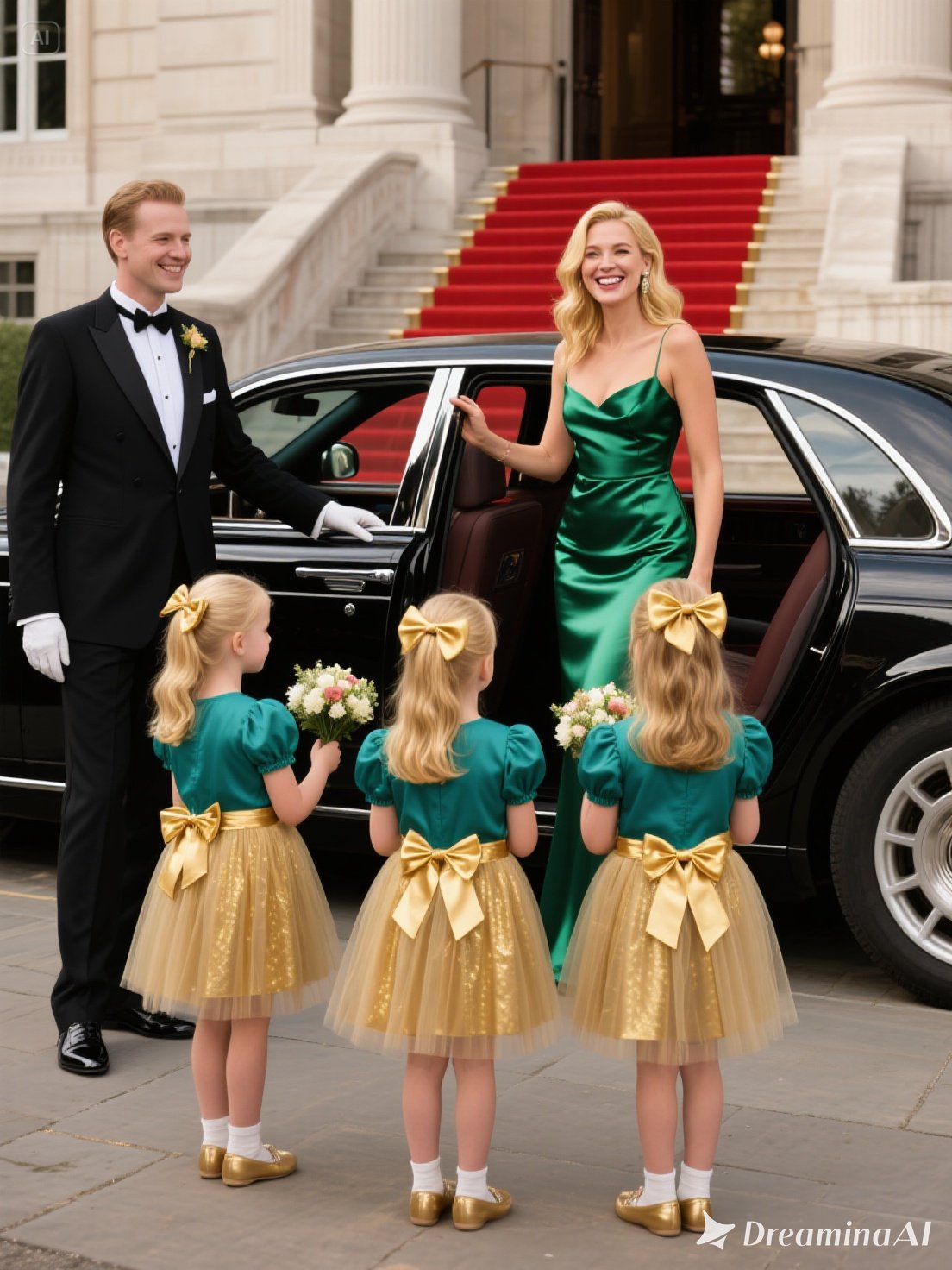 Three young girls in matching yellow dresses stepped out first, hand in hand, their curls bouncing as they walked the carpet.