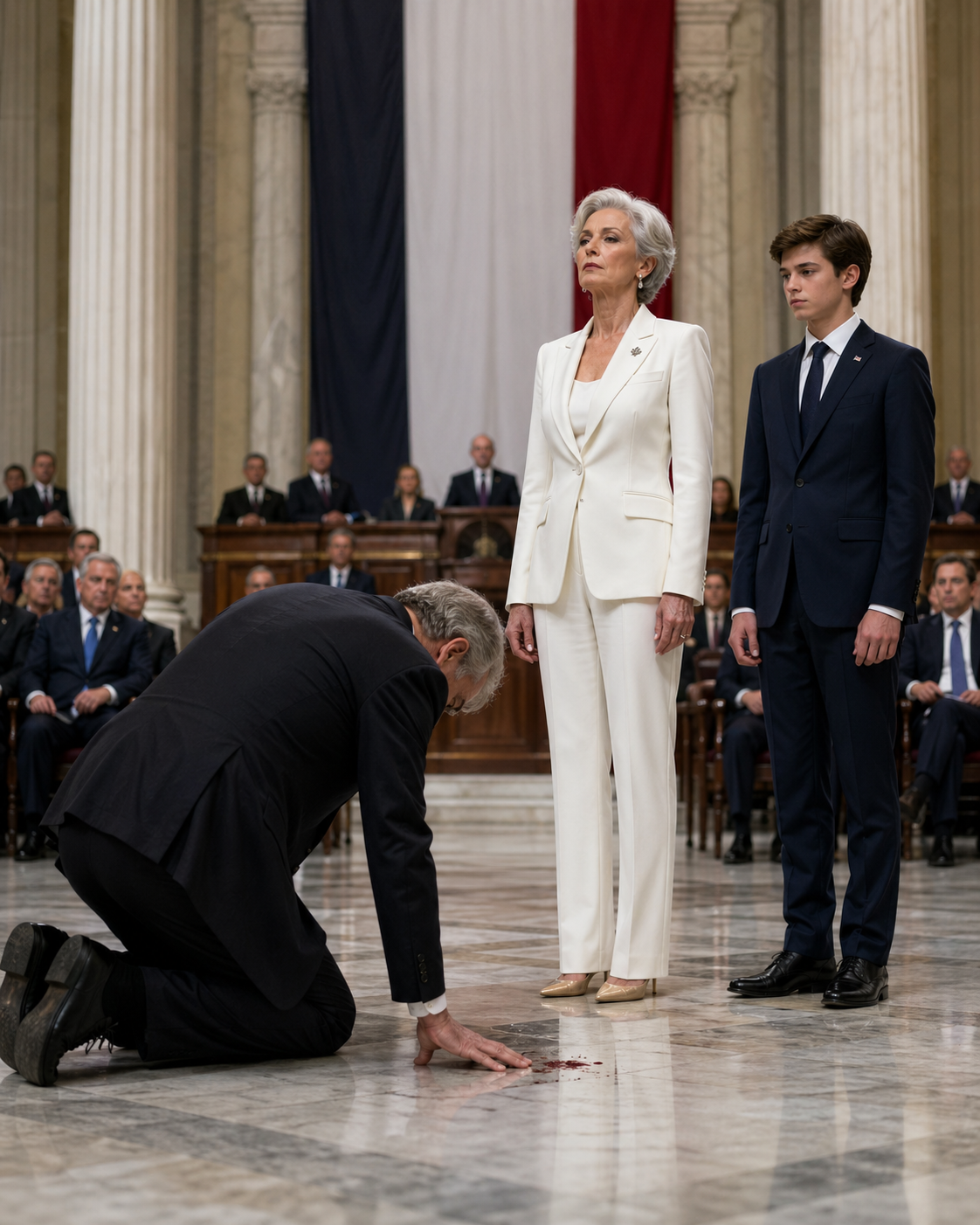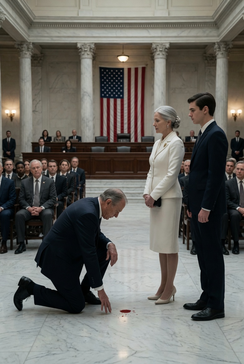 It arrives in three seconds of silence in which an empire built on arrogance and fraud and the discarding of inconvenient people finally, quietly, comes apart.