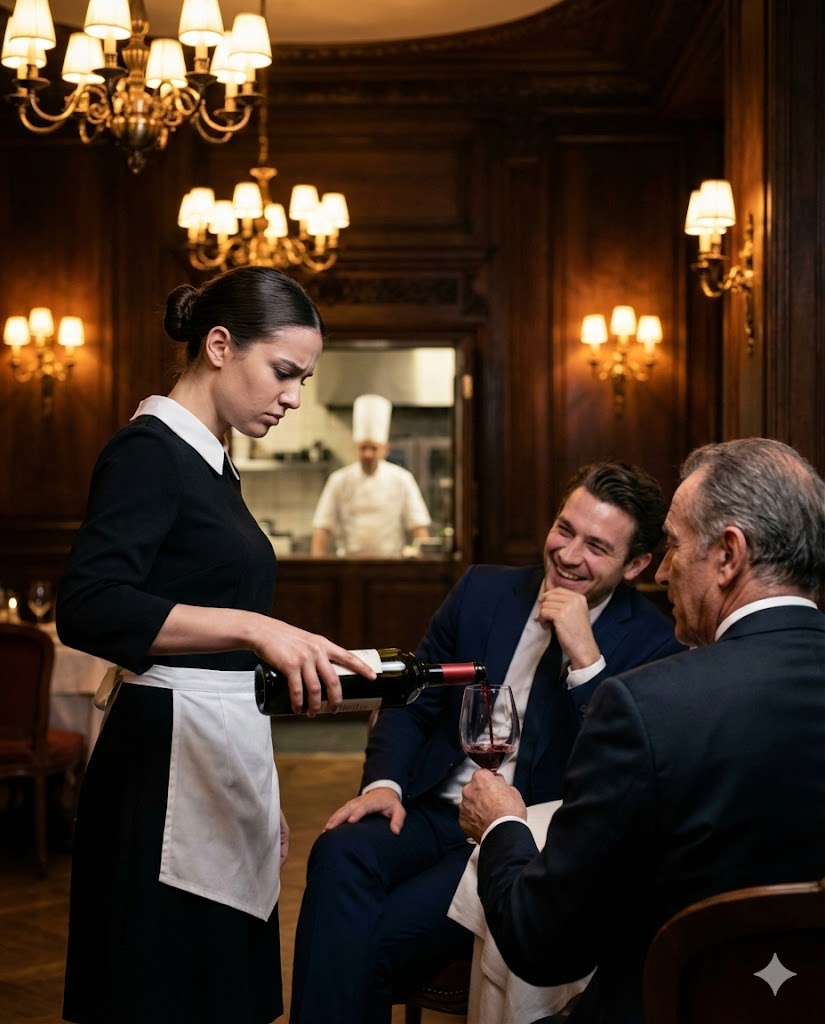 When Iris returned with the wine, her pour was exact—steady hand, perfect measure.