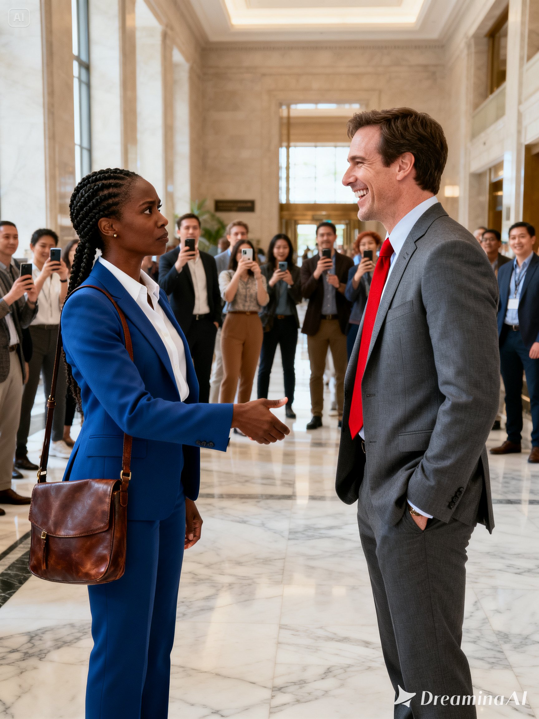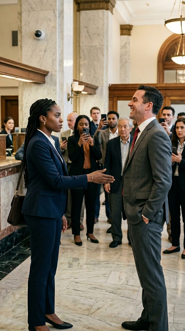 She ended the call and slipped the phone back into her jacket. The lobby had fallen completely silent, save for the soft hum of the air conditioning and the distant clicks of phones capturing every moment.