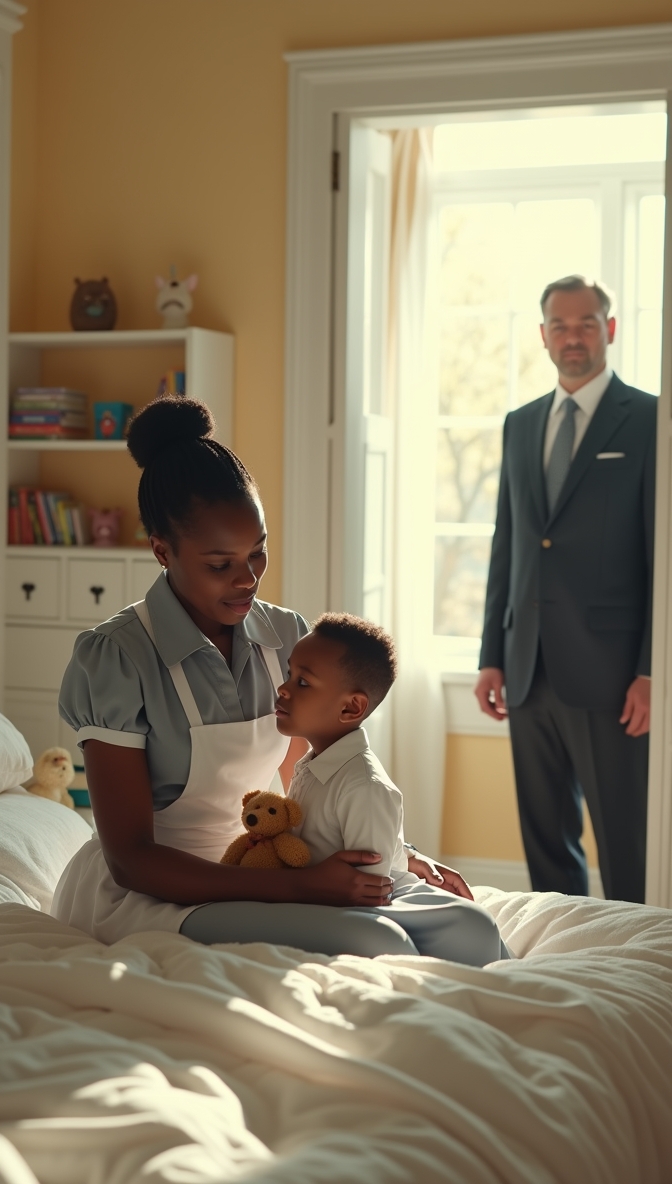 Then there was Grace—the maid, a quiet Black woman in her early thirties, dressed in a simple gray-and-white uniform, moving like a shadow through the marble halls.