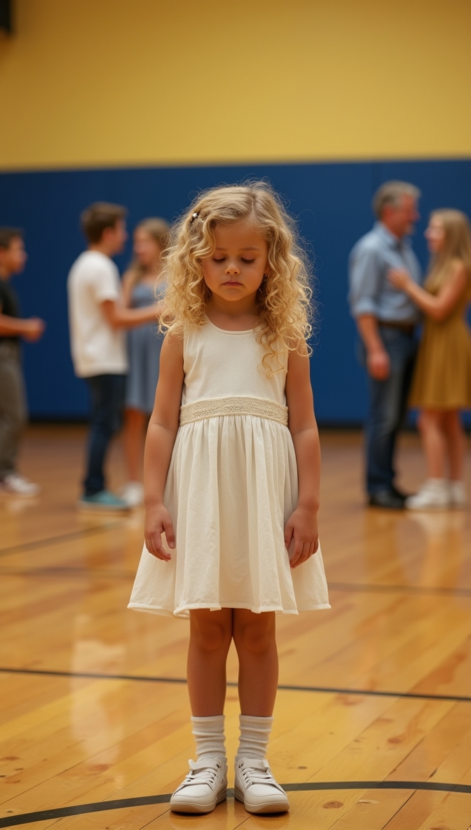 Every other girl had someone — dads in ties, boots, proud smiles, lifting daughters like princesses under the string lights. Even Mr. Wheeler, the school janitor, was dancing with his niece like it was the best night of his life.