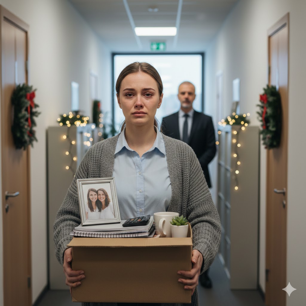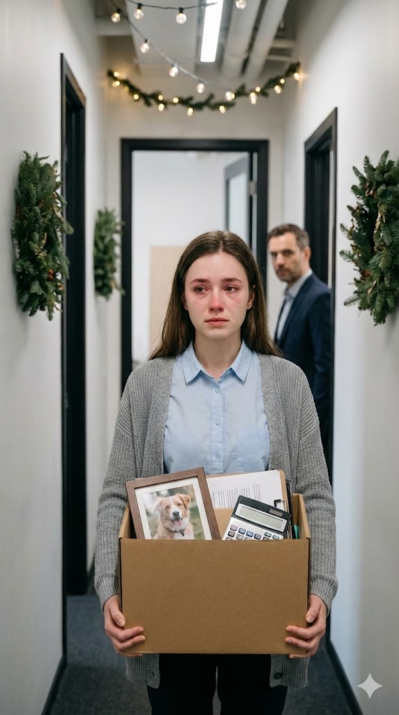 Neon signs flickered wildly along the streets of Madrid, their colors shimmering across rain-soaked pavement left by the December downpour. It was Christmas Eve—a time when the world seemed to slow down to savor warmth, love, and family. But for Julia García, the air held nothing but the sharp sting of uncertainty. On the seventh floor of Industrias Mendoza’s towering glass-and-steel headquarters, the holiday décor felt like a cruel disguise. Gold garlands and a massive Christmas tree in the lobby mocked her as she walked the long marble hallway, clutching a worn cardboard box tightly against her chest.