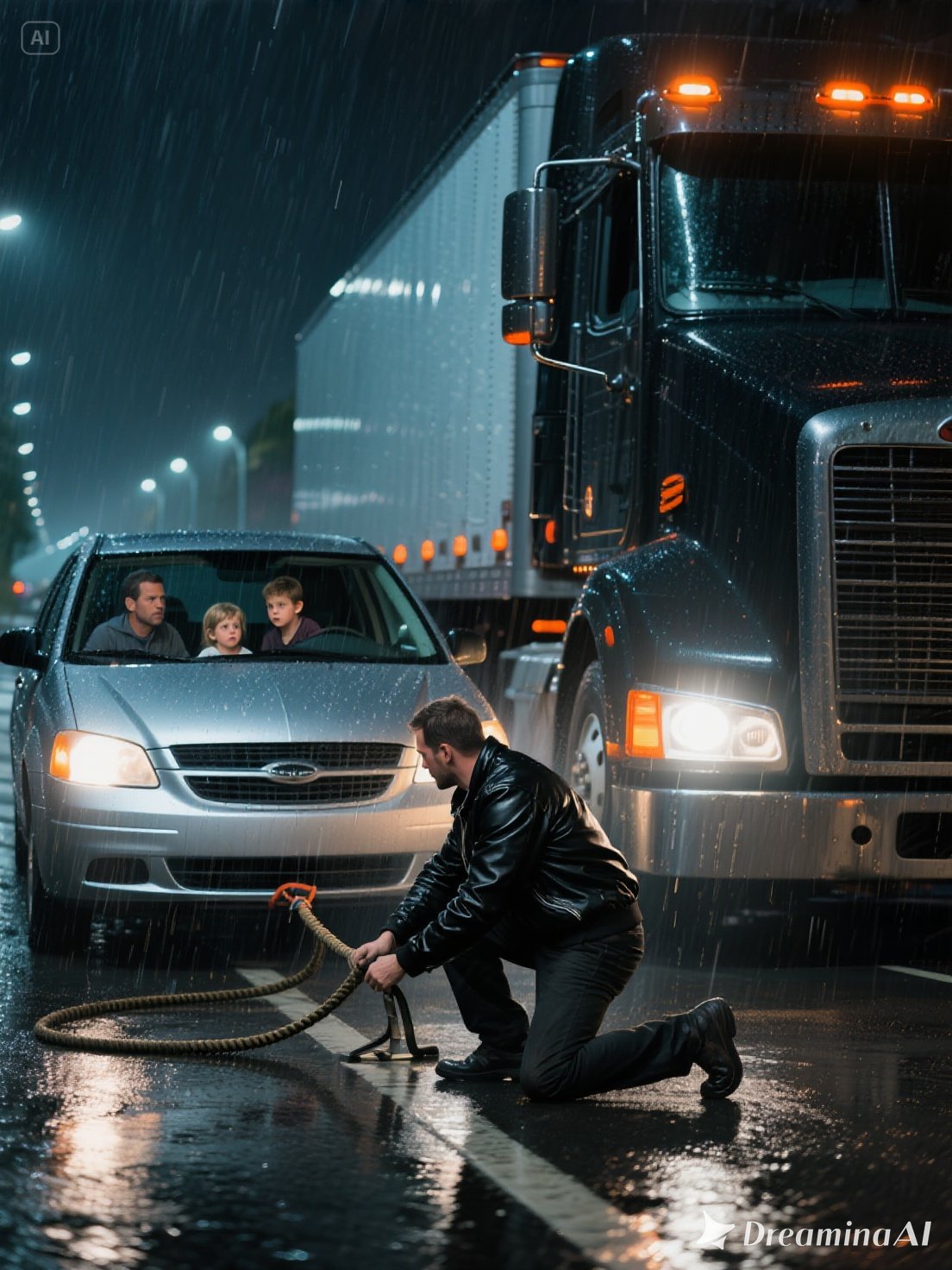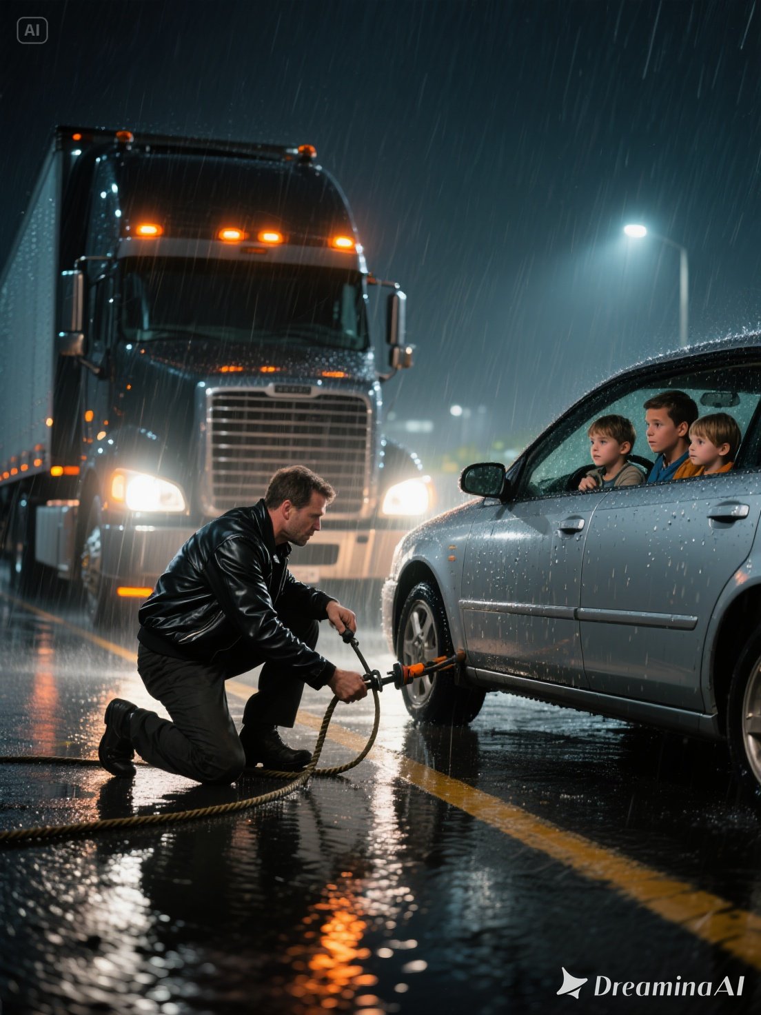 With a muttered curse — at myself, at my conscience, at the career I was about to lose — I slammed the air brakes. The rig shuddered as I pulled over about fifty feet ahead of the SUV. I threw on my rain gear and stepped into the storm.