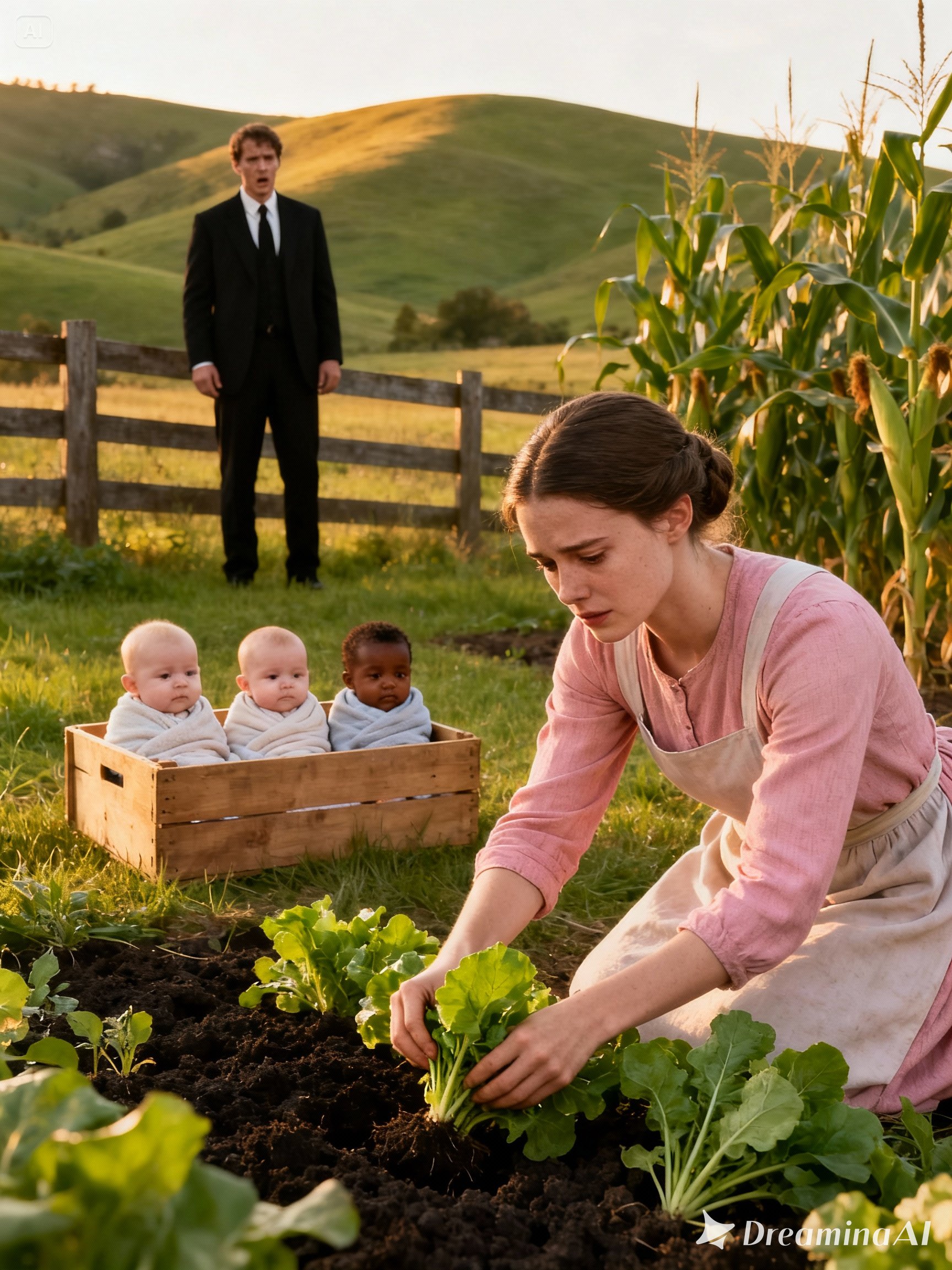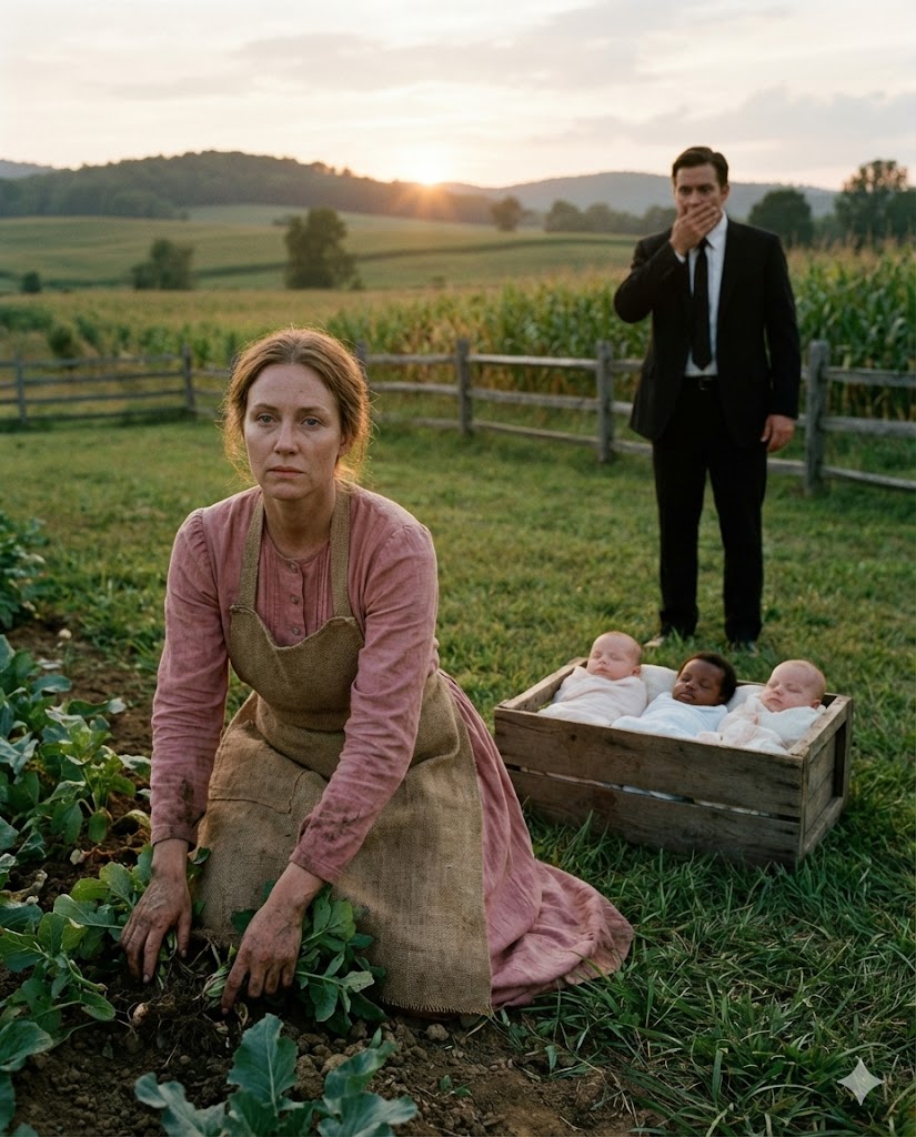 Then the third child crawled forward. Darker skin. Gentler gaze. He clung to her apron like it was home.