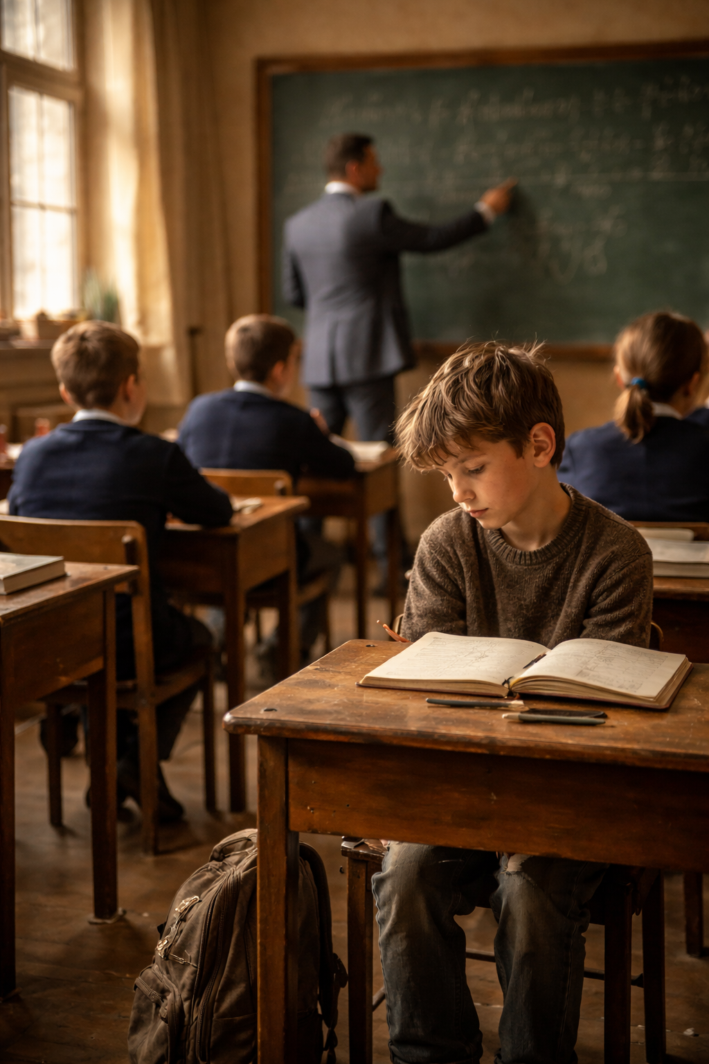 He took the seat in the corner. From his bag he pulled out his notebook—the only one he owned, its pages filled with microscopic handwriting to conserve paper—and a yellow pencil. It wasn’t just any pencil; his father had given it to him with his final paycheck. It had once been eighteen centimeters long. Now, after years of equations and dreams, barely eight remained.