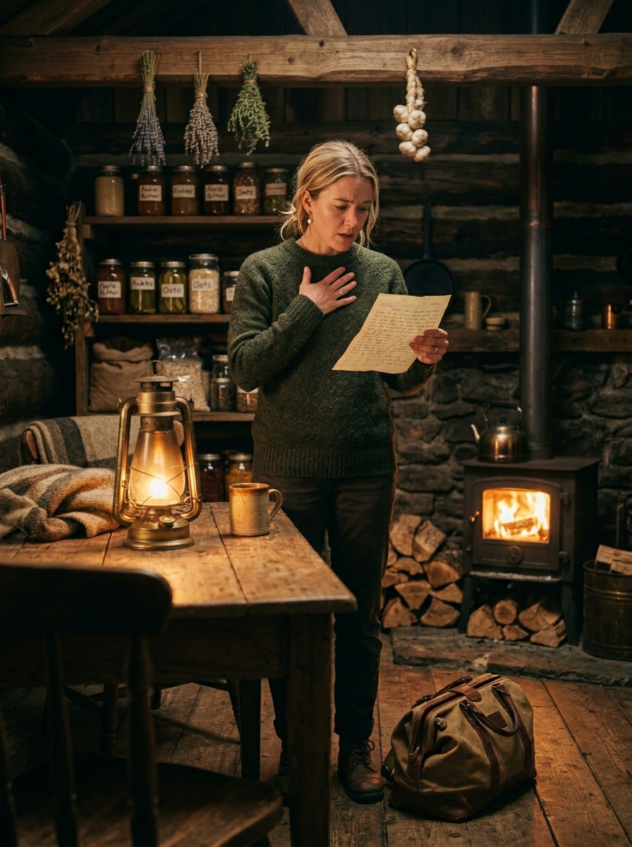 She didn’t sleep that night. By dawn, she had decided: if her aunt, mad or not, had even partly been right, she could not ignore the warning. She packed a backpack with essentials and set out for the cabin, guided only by the coordinates scribbled in the letter.