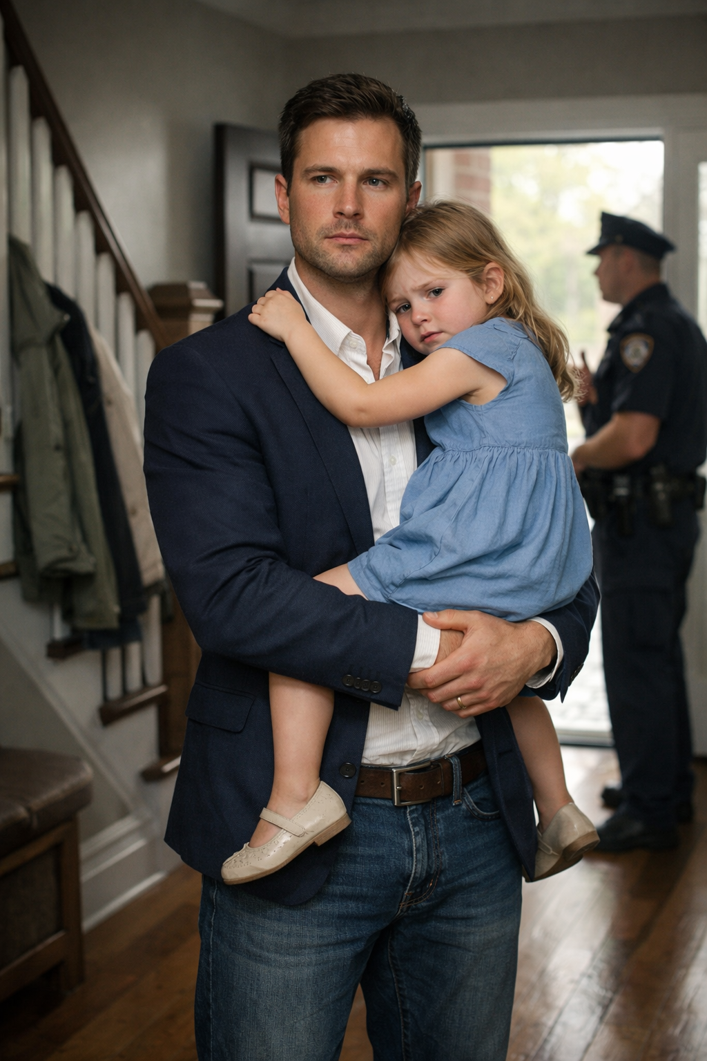 The first thing Gideon Hale did after the officers stepped away was lock the deadbolt, fasten the chain even though it offered more reassurance than real protection, and settle into the living-room recliner with his daughter until he felt her small body slowly loosen from the rigid, startled posture she’d held since the knock. Sophie was eight—old enough to know uniforms meant authority and consequences, yet young enough to turn every unfamiliar sound into danger. She flinched when a neighbor’s car door slammed two houses away, and she jumped again when a dog barked behind their yard, as though noise itself had become a hand reaching for her.