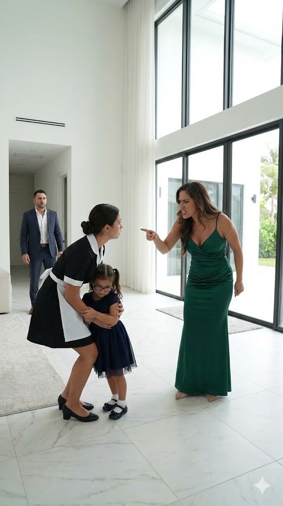 “It’s just… Maria,” she said, pointing to the maid who was still on the floor. “She provoked me! She was turning the girl against me! Sofia spilled juice on me on purpose to ruin my dress!”