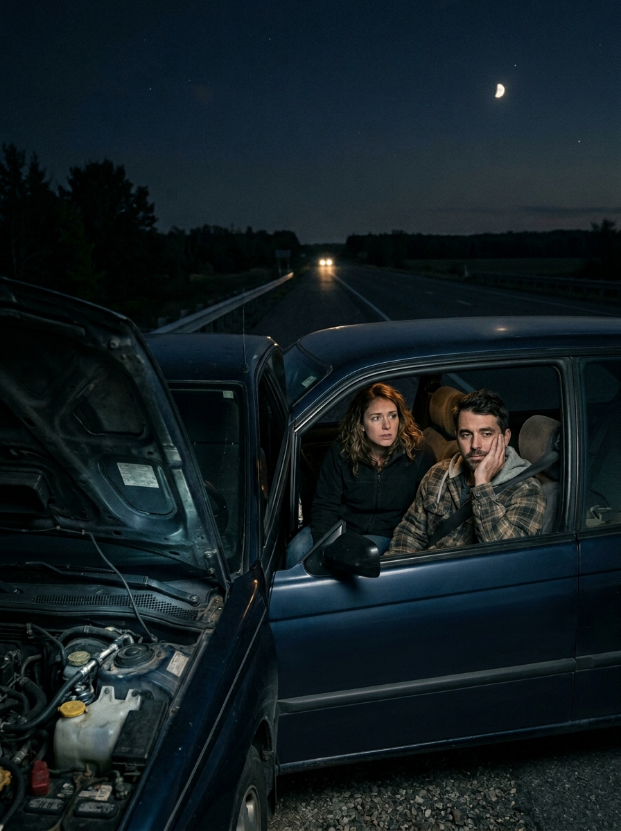 It was two in the morning on a quiet highway under the moonlight when our old sedan finally broke down.