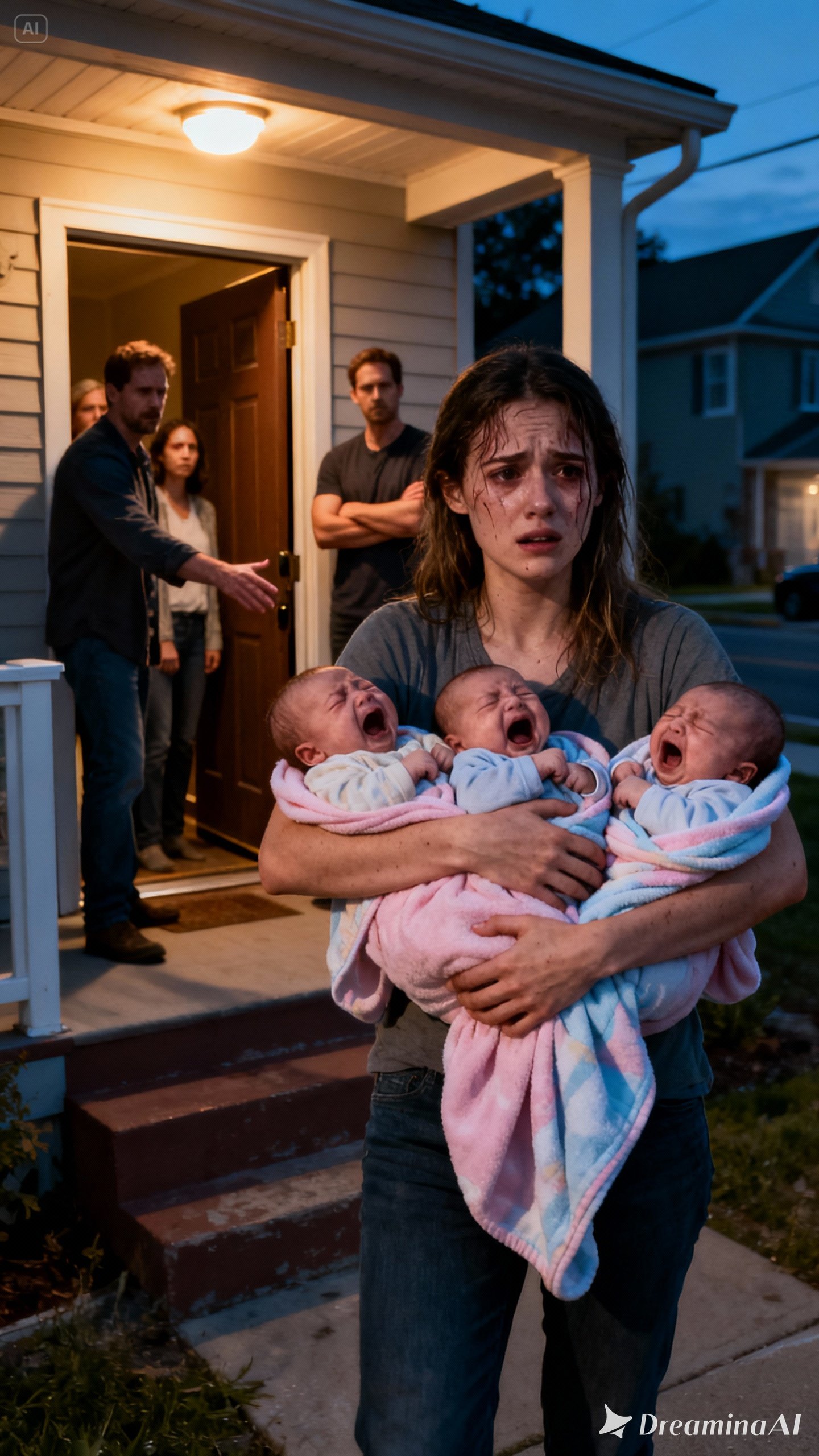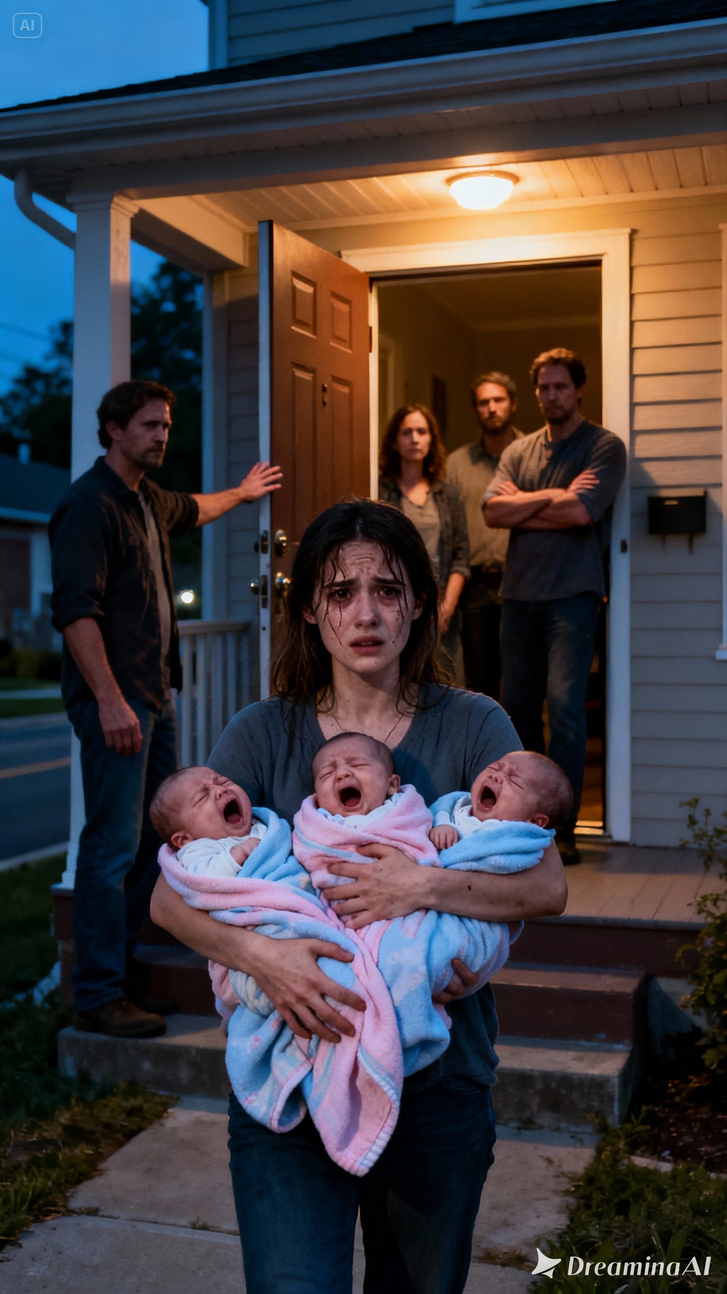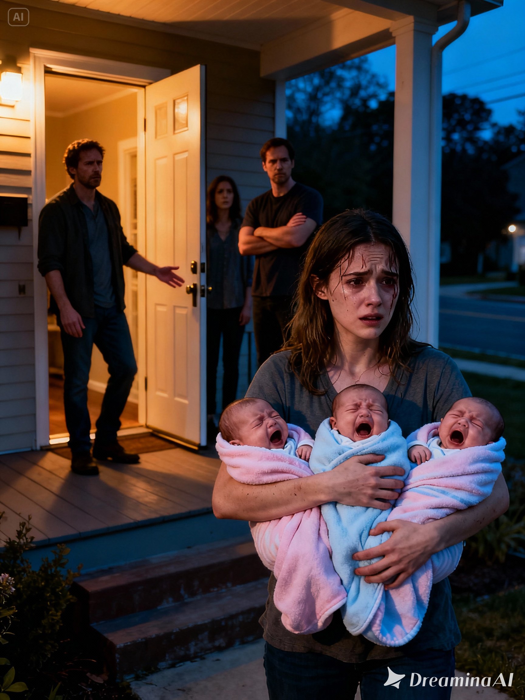 Her bare feet stung against the icy floorboards. Her arms trembled as she held all three infants to her chest. Inside, her husband, Daniel, slammed the door shut and turned off the lights as though she had never existed. He assumed she had nowhere to run. He assumed she had no one.