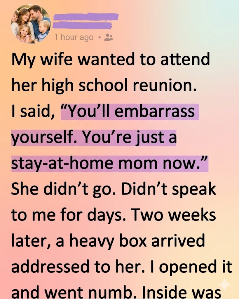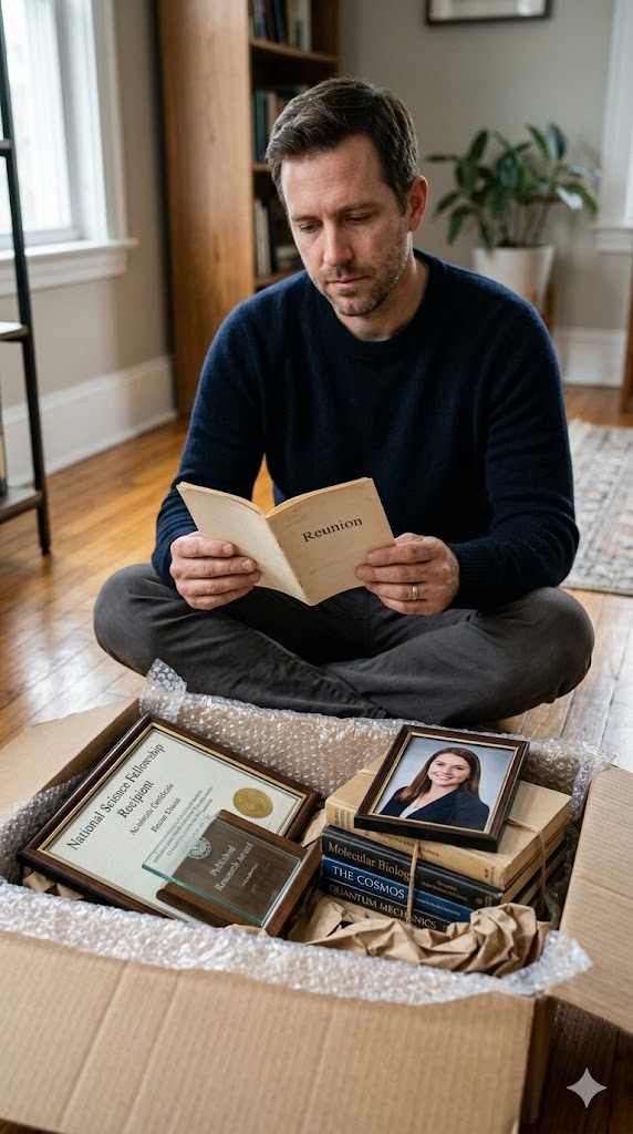 She explained that an old mentor had nominated her to the reunion committee. The box contained duplicates—extra copies she’d never bothered unpacking when she quietly stepped away from that world.