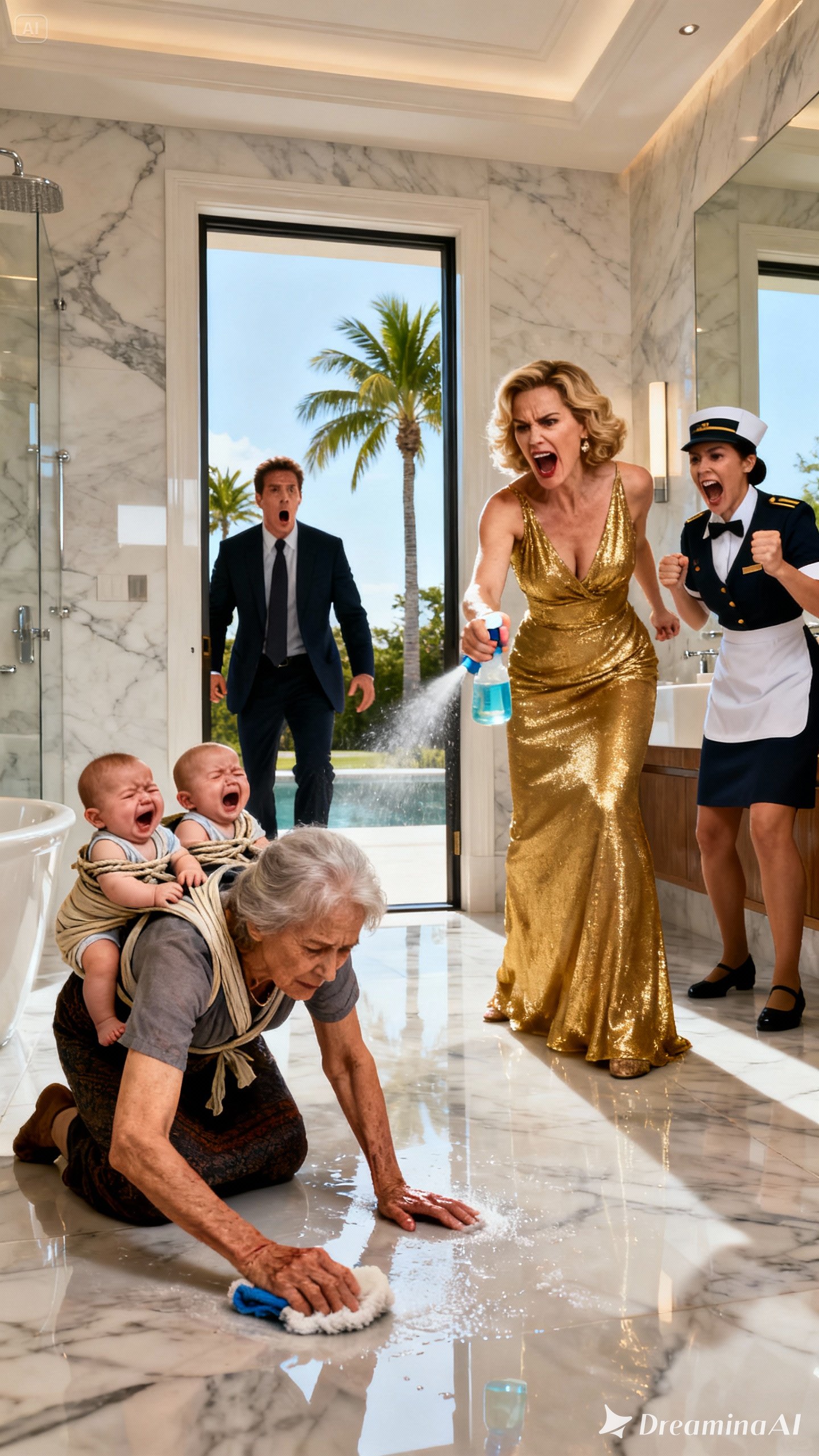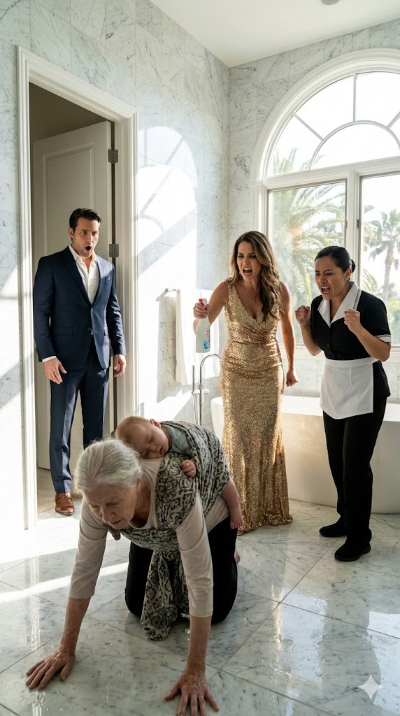 My mother, Doña Elena—a seventy-two-year-old woman whose hands were twisted with arthritis—was kneeling on the icy marble floor. Her back was bent, and strapped tightly to her with a shawl were my two children, heavy and sobbing.