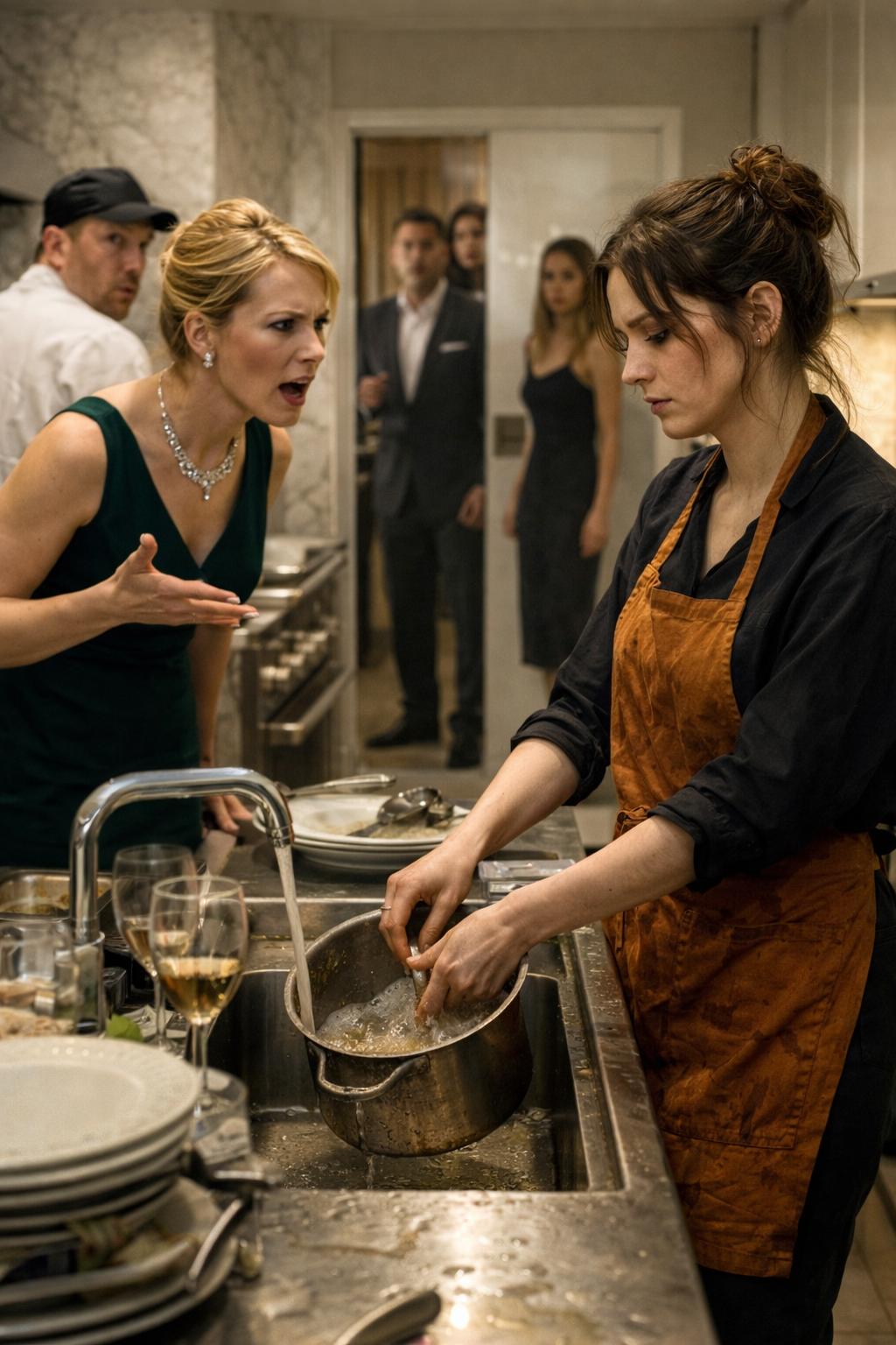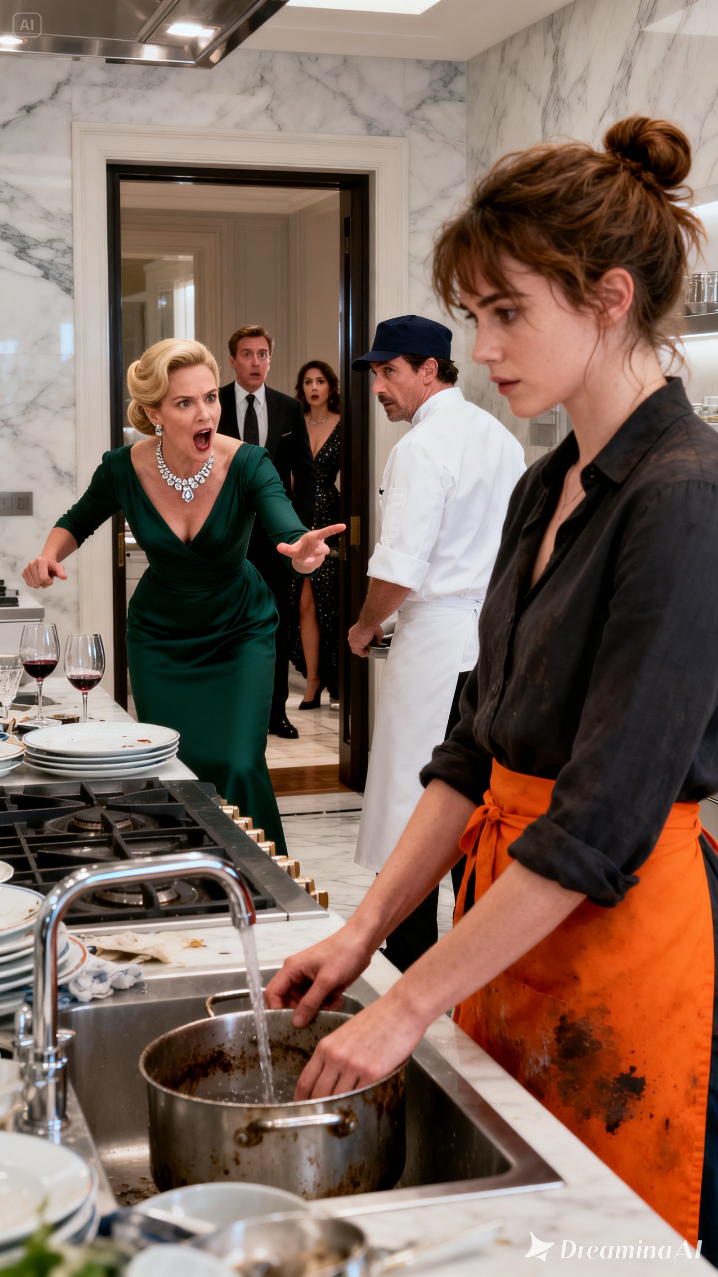 “She’s been downstairs,” I went on. “Washing your dishes. Cleaning up after you. Standing in a service kitchen as if she doesn’t belong here.”