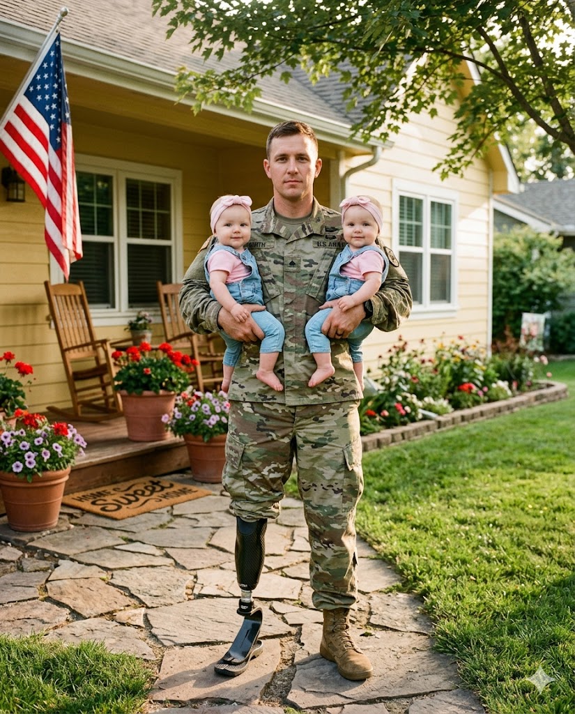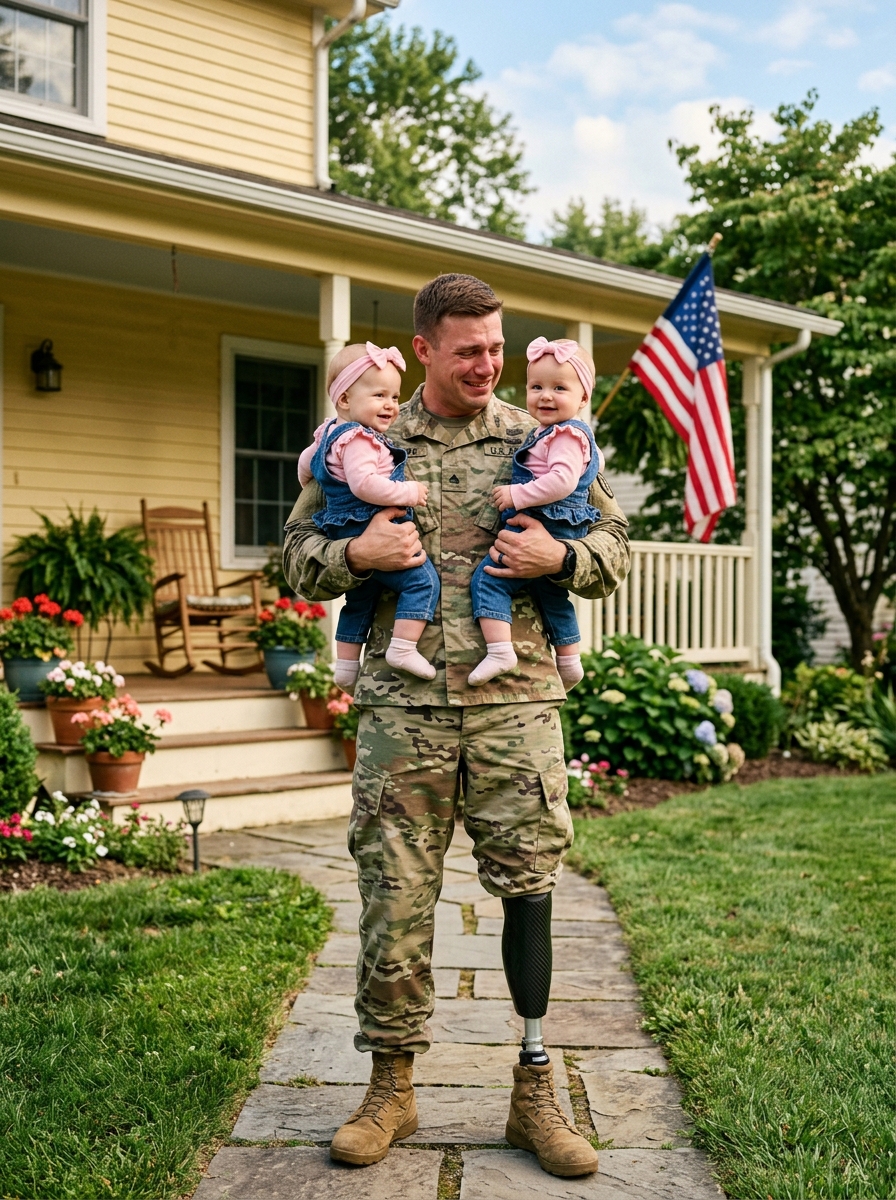 I came back from service with a prosthetic leg I had kept hidden from my wife, carrying gifts for her and our newborn daughters. Instead of a joyful reunion, I found my babies crying and a note saying she had left us for a better life. Three years later, I stood at her door once more. This time, it was on my terms.