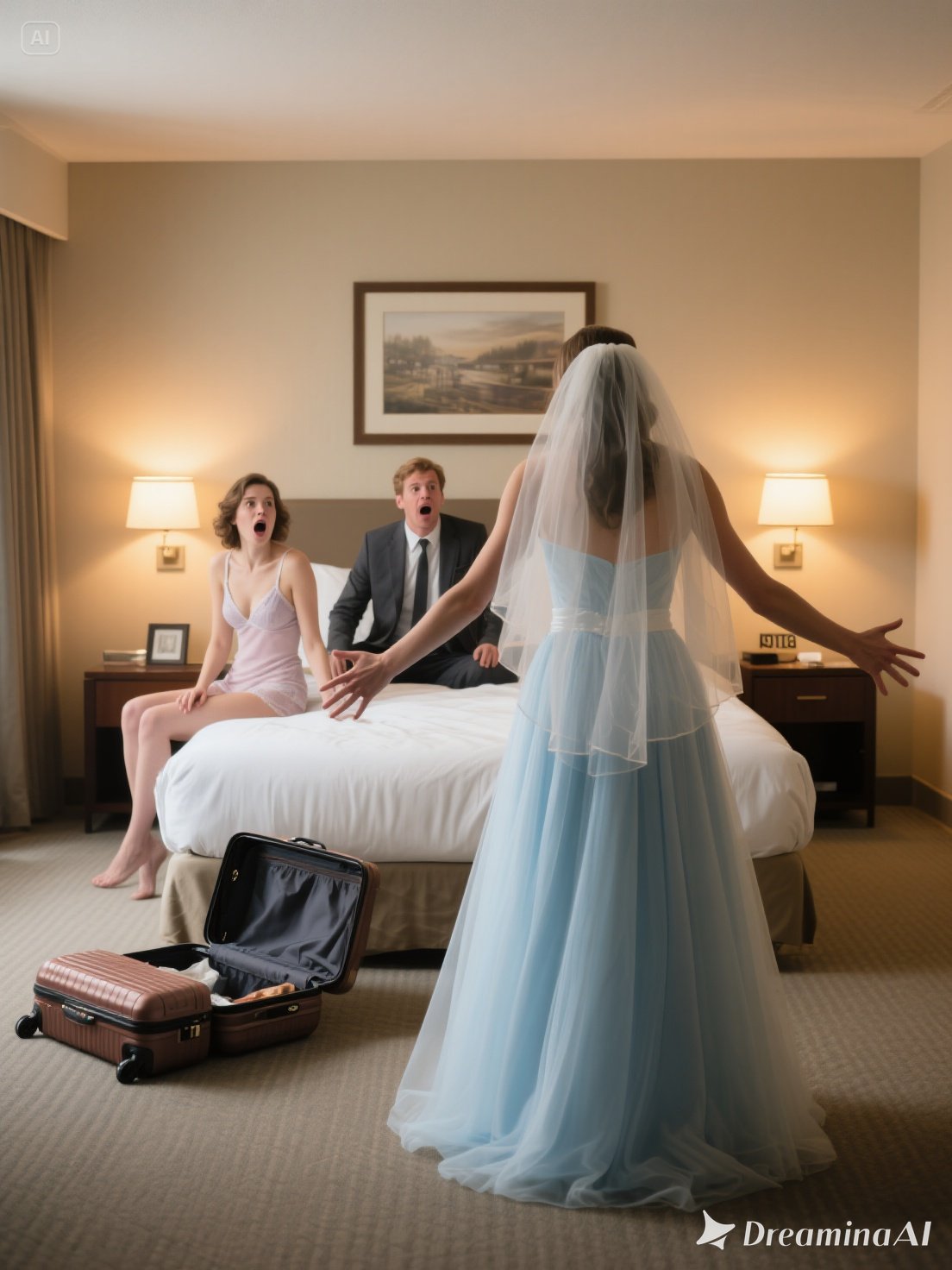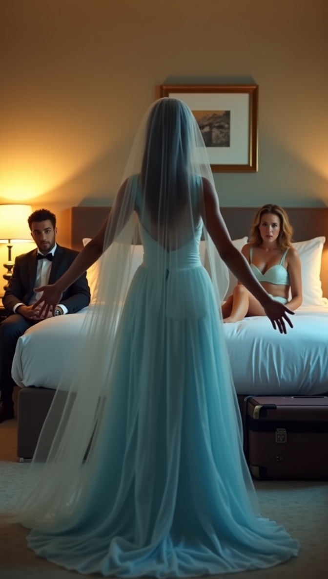 Time froze. My wedding gown brushed against the doorframe, its lace sleeves suddenly feeling like chains. My chest burned, my stomach turned over, and the world around me collapsed into silence.
