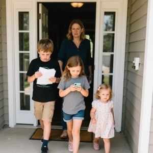 Noah thundered down the stairs, backpack half-zipped, math worksheet clutched in his fist. Emma was still upstairs, probably staring at her phone instead of brushing her teeth like I’d asked her to do three times already.