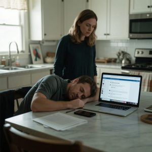 Jack had passed out at the kitchen table with his laptop open in front of him. I stood there for a moment, watching him sleep, this stranger I’d married. This liar. This cheat.