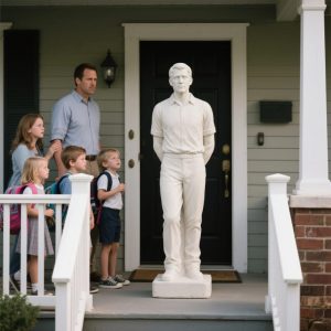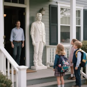 The morning my husband stayed home sick (for the first time ever) I didn’t expect to find a life-sized statue of him on our porch. He turned white, dragged it inside, and refused to explain. But when I read the note beneath it, everything I thought I knew shattered.