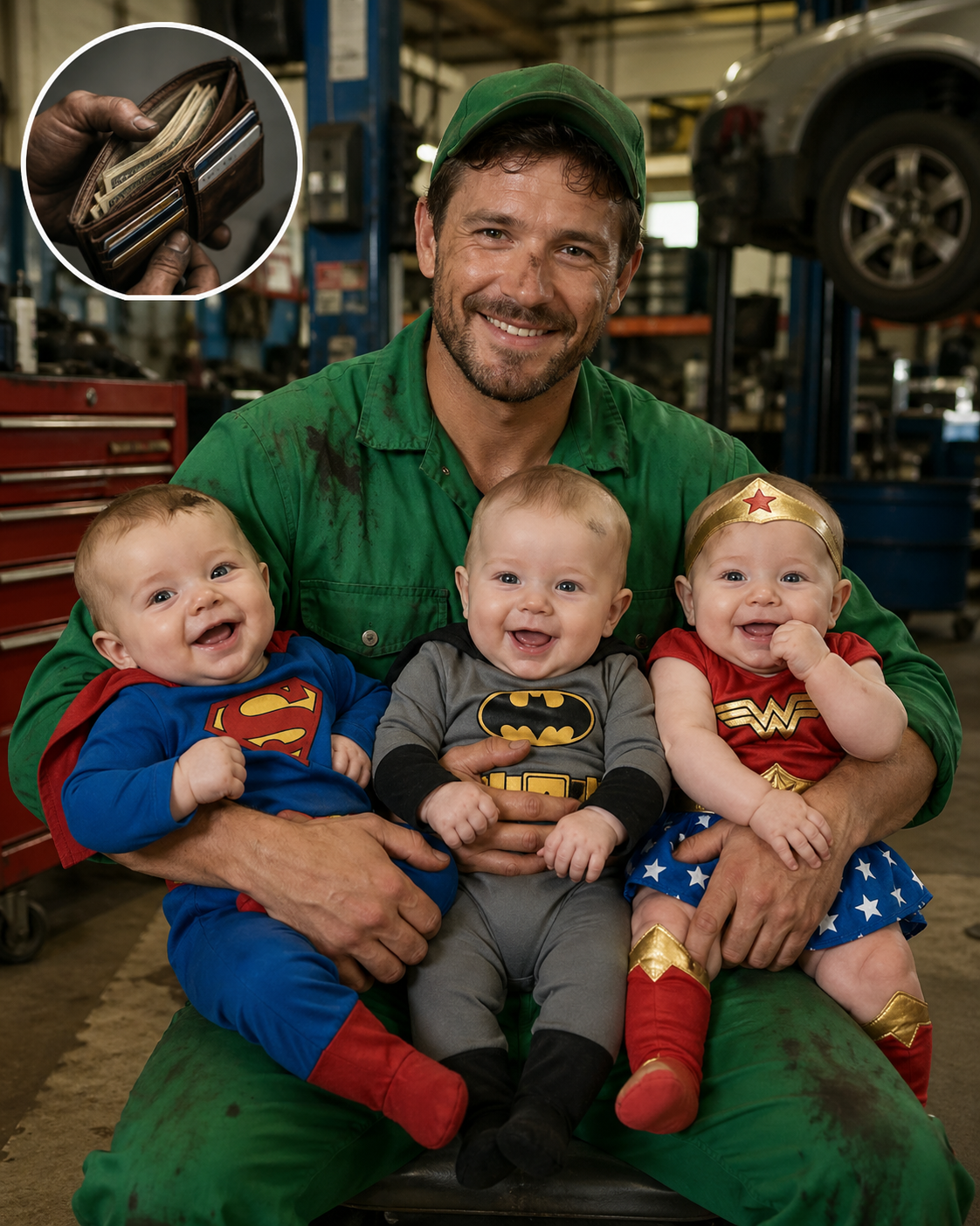 I’m Evan: a broke mechanic, a single father of six-year-old triplets, and a man who measures his success by how full the lunchboxes are and how long the light stays on at home.