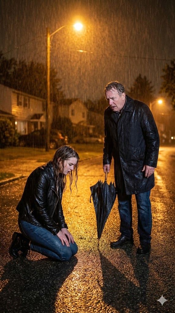 “Dad… I’m sorry… I just… bought a dress on sale…” Her voice cracked, barely audible over the storm.